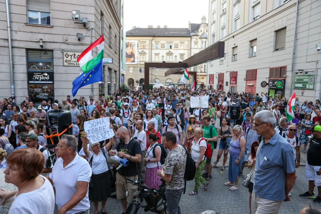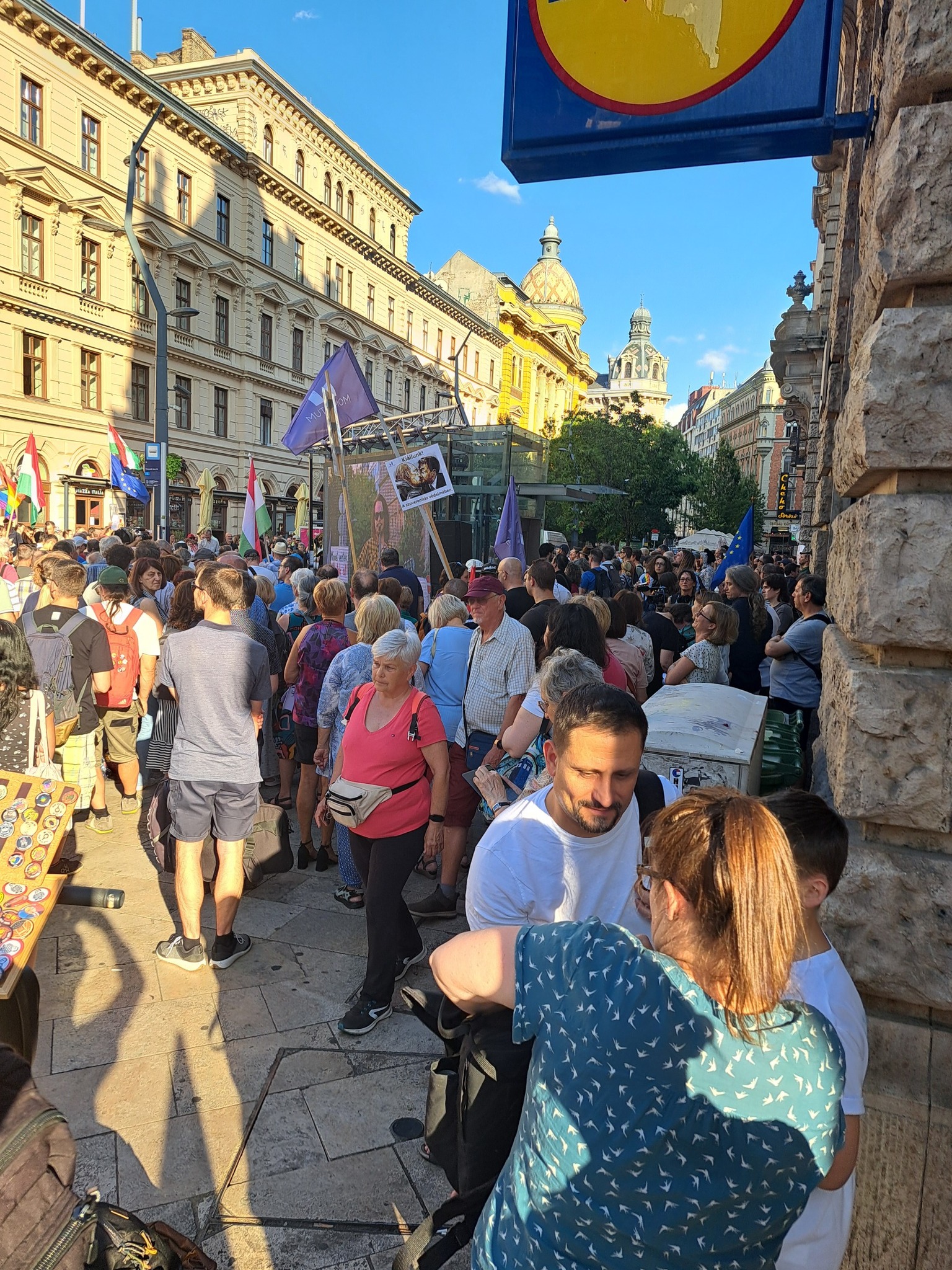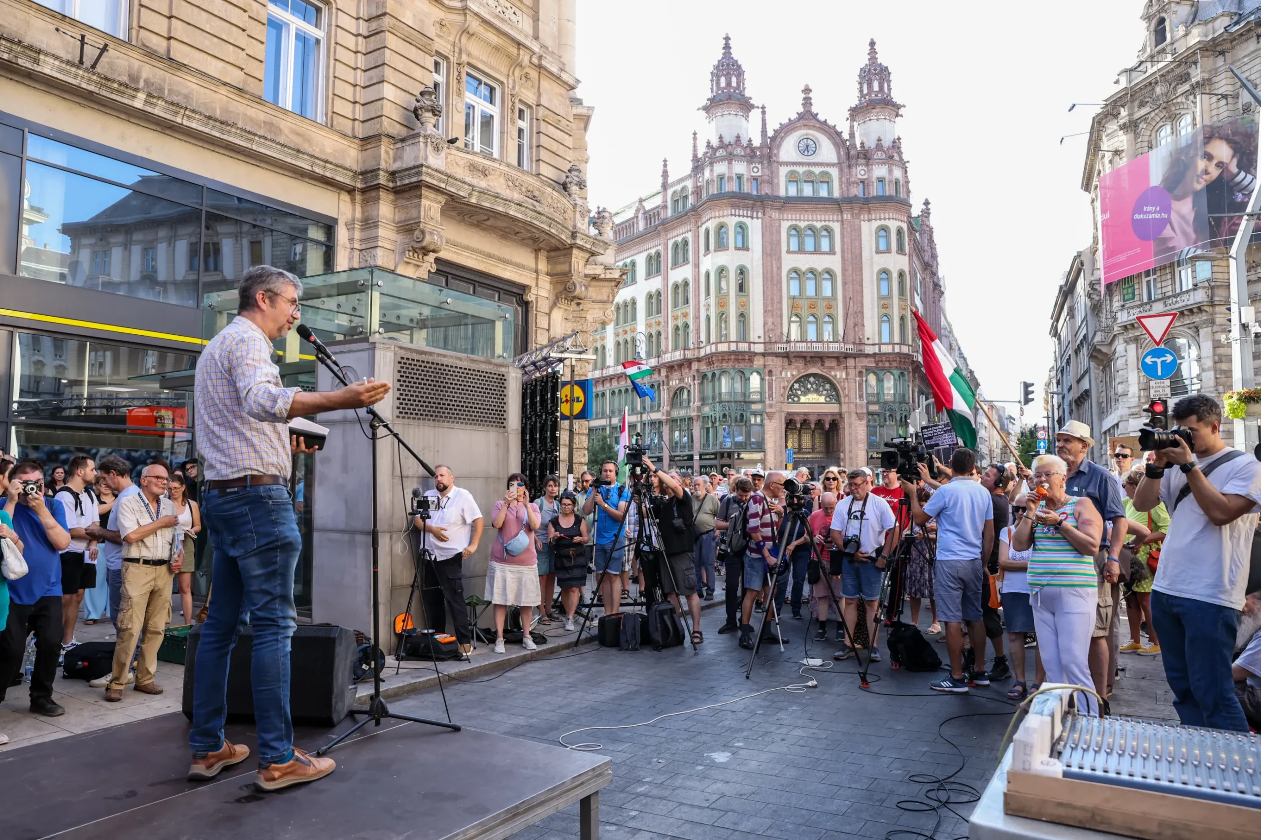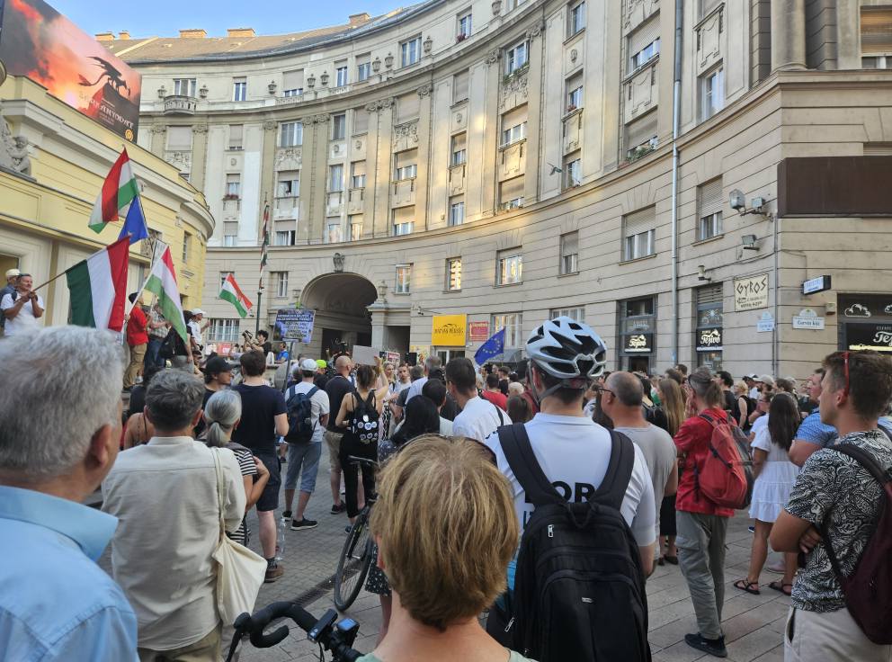 „Nem hagyjuk abba!” címmel kedden délutánra ismét tiltakozást szervezett Hadházy Ákos képviselő. Ez volt a tizenötödik tüntetés egyhuzamban, és ez is a Ferenciek terén kezdődött, de a szokásostól eltérően nem 17 órakor, hanem 17:30-kor.