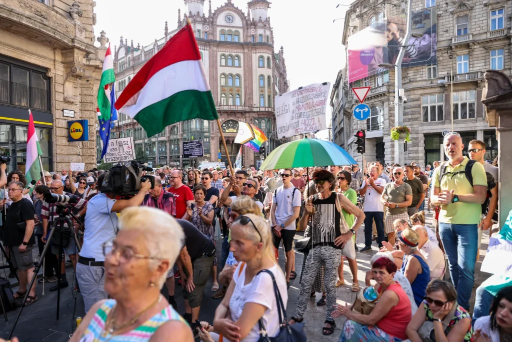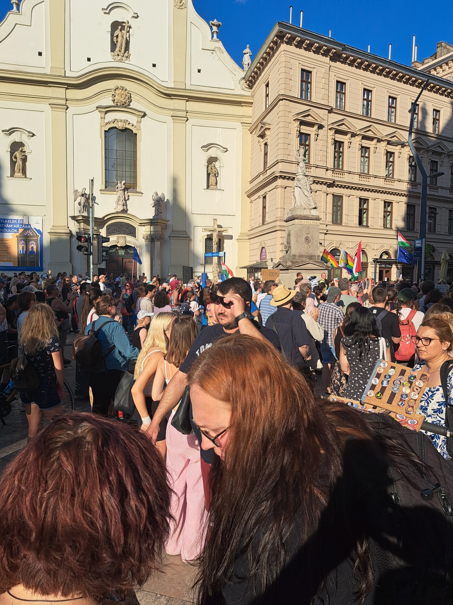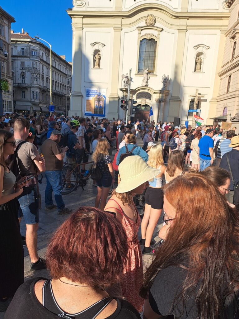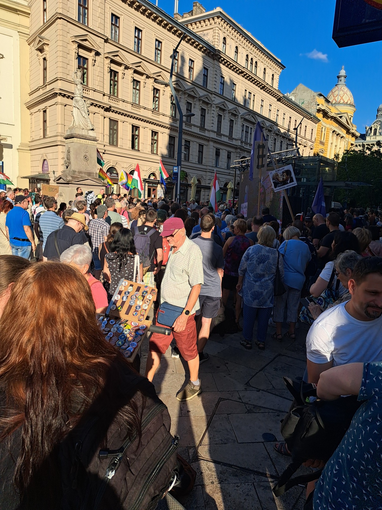 „Nem hagyjuk abba!” címmel kedden délutánra ismét tiltakozást szervezett Hadházy Ákos képviselő. Ez volt a tizenötödik tüntetés egyhuzamban, és ez is a Ferenciek terén kezdődött, de a szokásostól eltérően nem 17 órakor, hanem 17:30-kor.