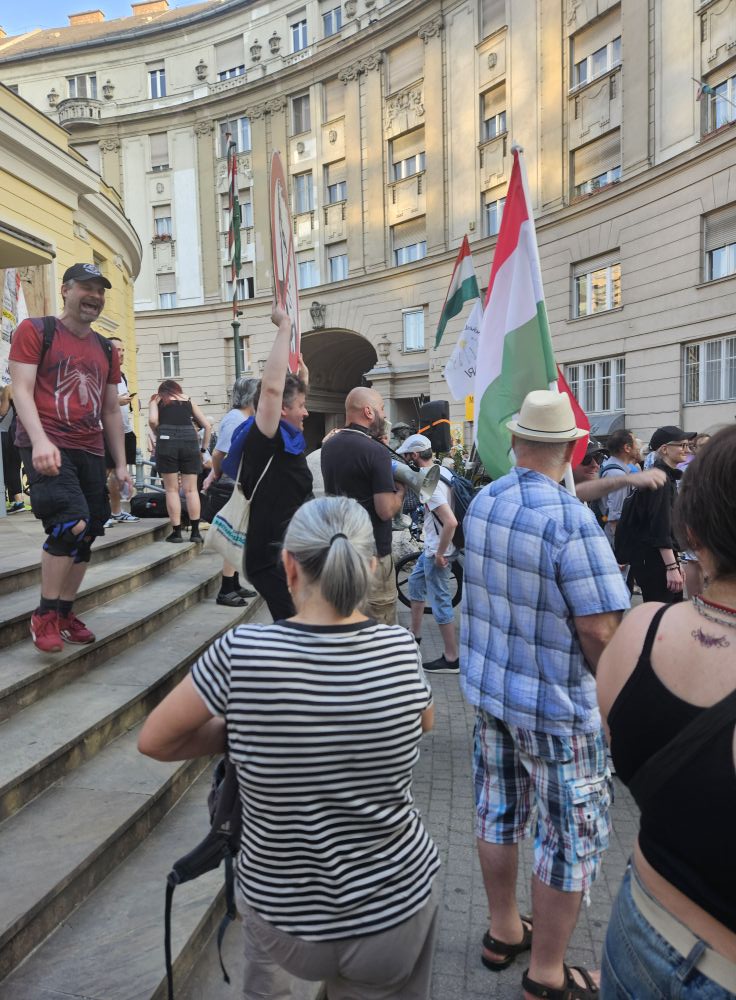 Hadházy úgy köszönt el az összegyűltektől, hogy jövő héten is lesz tüntetés. Ennek ellenére vagy három tucatnyian elindultak a Petőfi híd irányába, és nekiálltak a városban sétálgatni. Először átmentek a Petőfi hídon, onnan a Szabadság híd irányába indultak, de a felső rakparton folytatták – egyre fogyatkozó létszámban – az útjukat. Stábunk itt adta fel a menet kísérését.