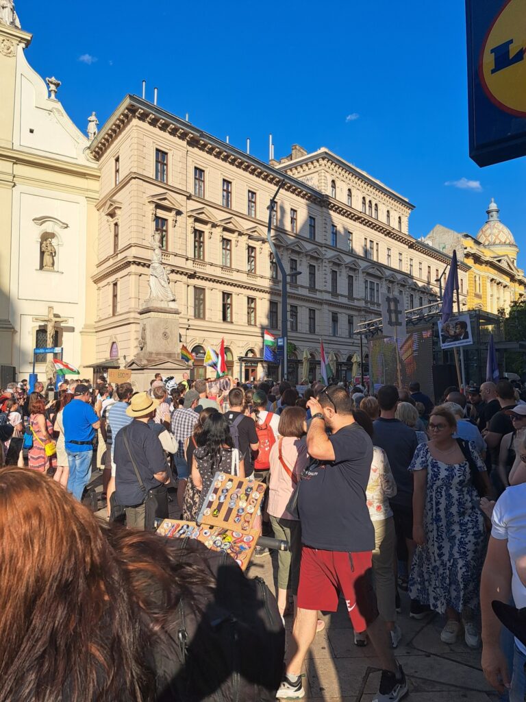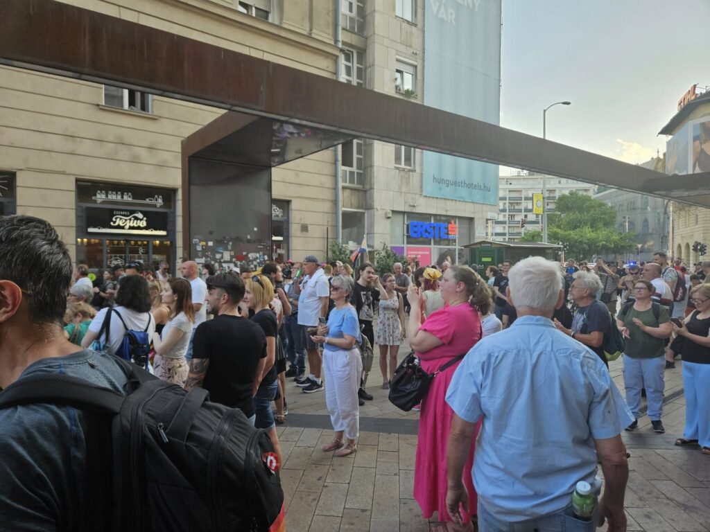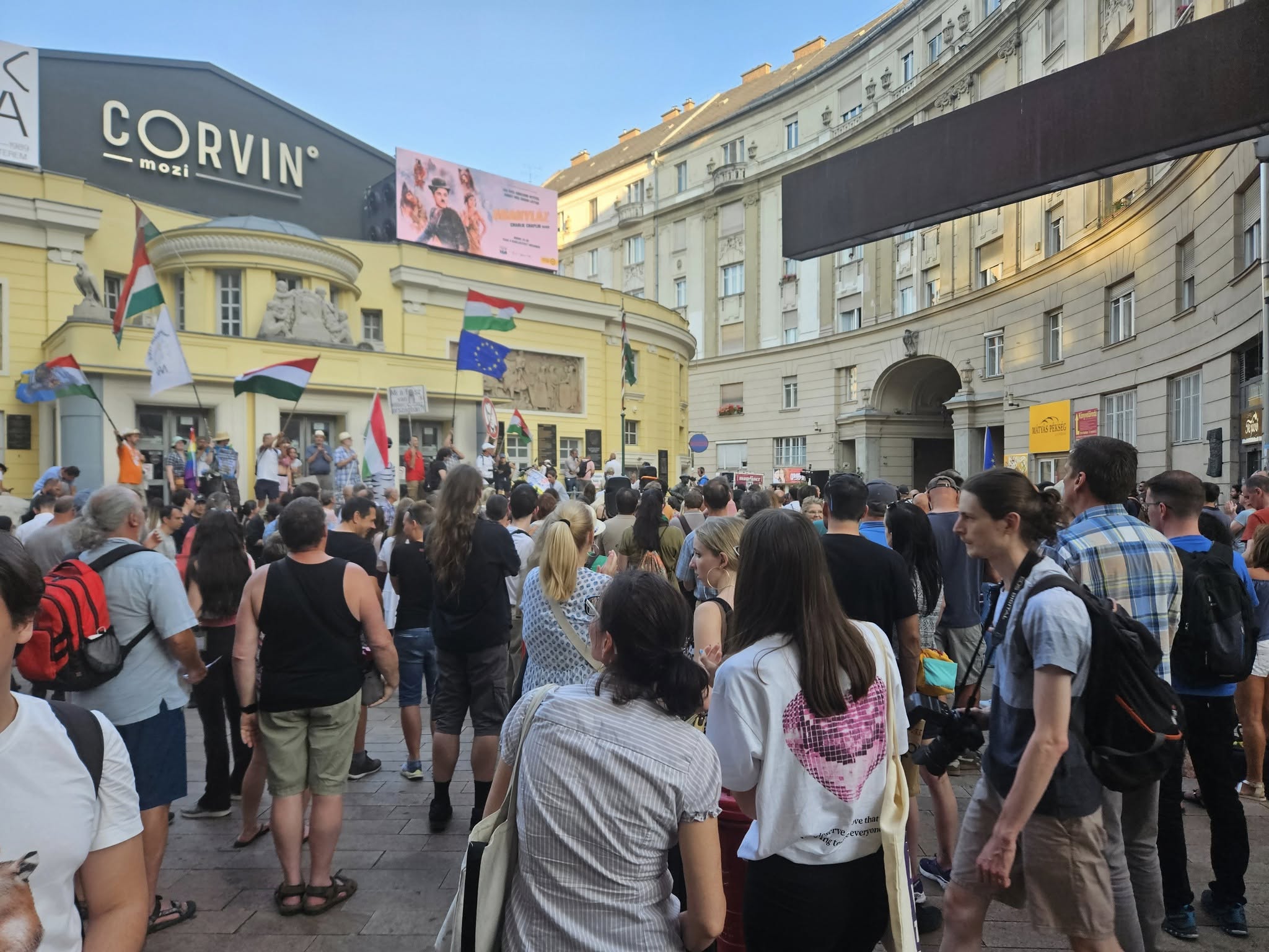 Mire a vonulás a Corvin közhöz ért, a résztvevők száma kissé megnőtt, de a Corvin közt közel sem tudták megtölteni, elég szellősen álltak.