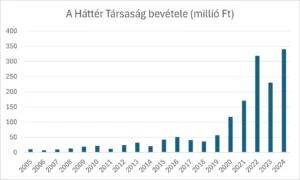 Bár az előző két lobbiszervezethez képest kevesebb támogatásban részesültek, az ábra is jól mutatja, hogy a rendelkezésükre álló anyagi kapacitás mennyisége szintén megszaladt az utóbbi néhány évben. 2024-ben például hozzávetőlegesen „csak” 62 millió forintból folytathatták érzékenyítő tevékenységüket.