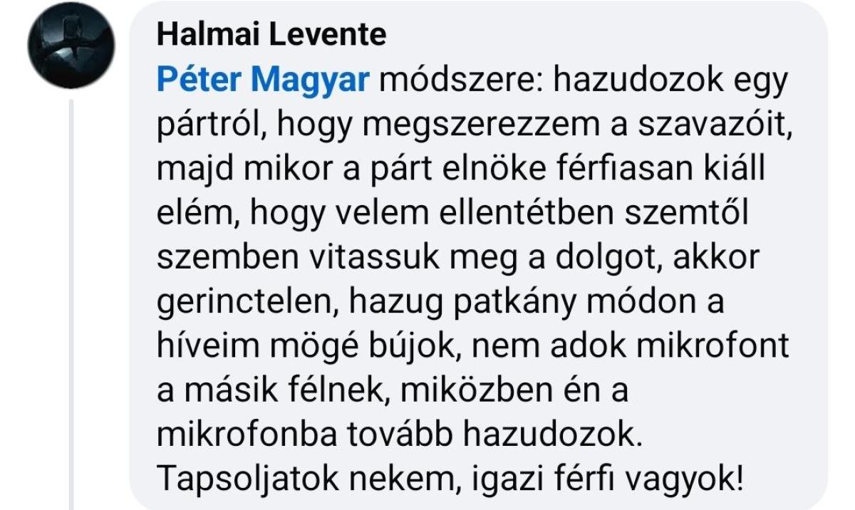 Majd szokásához híven Magyar Péter rohant a Facebookra és megírta a hazugságait. Őt bántotta a Toroczkai, akit a Fidesz küldött… blablabla…