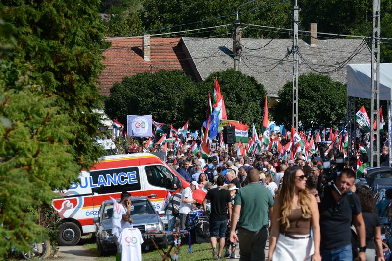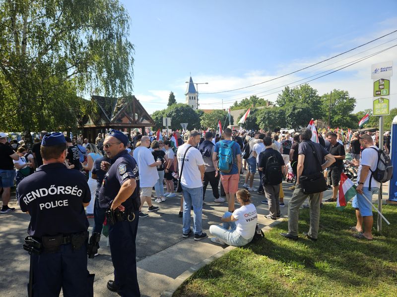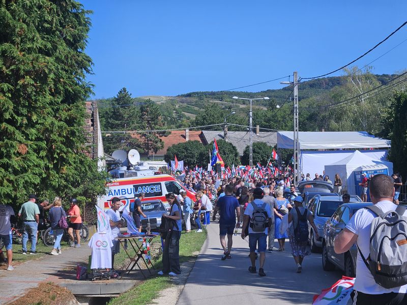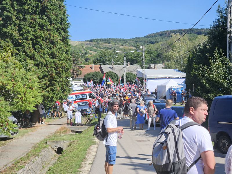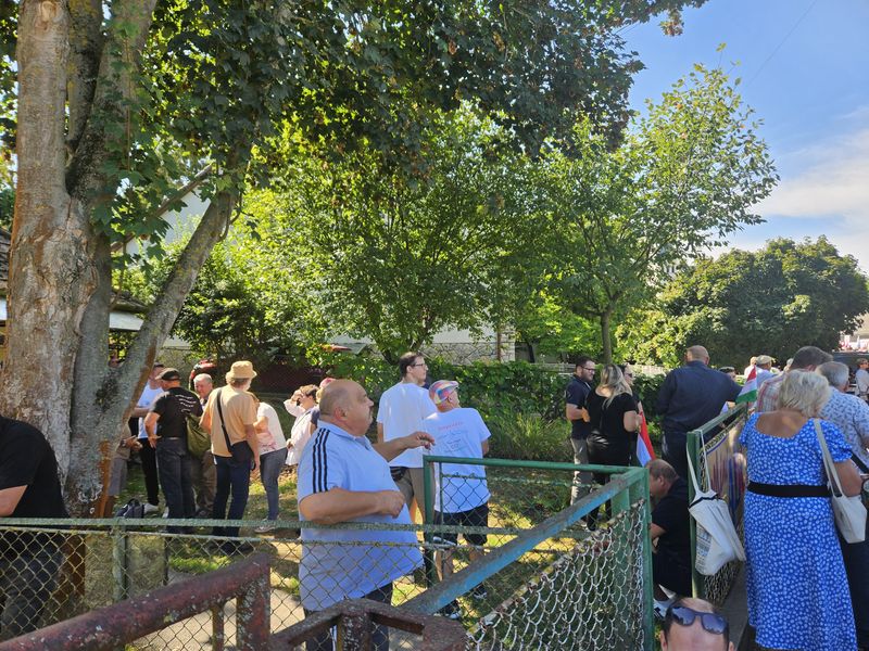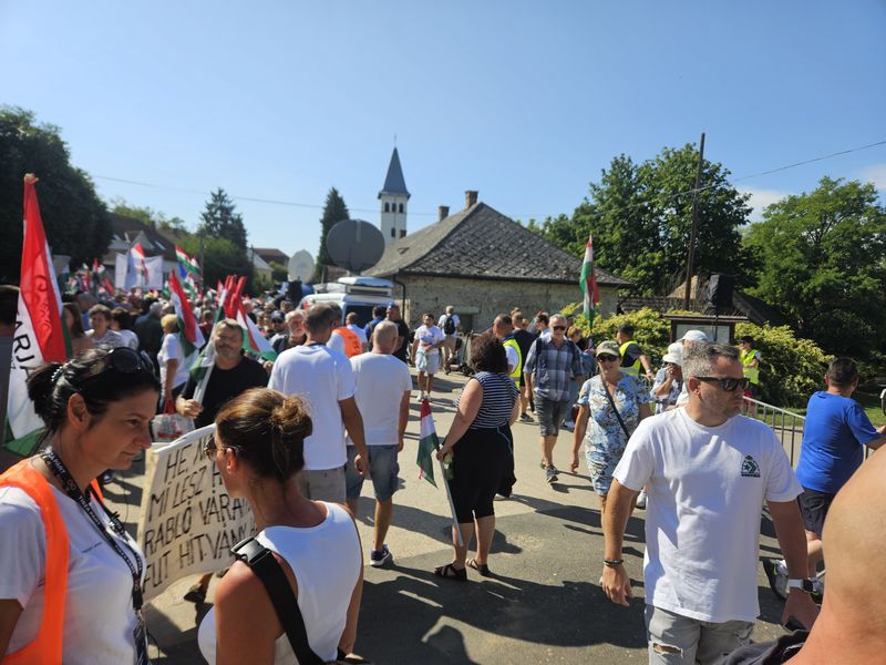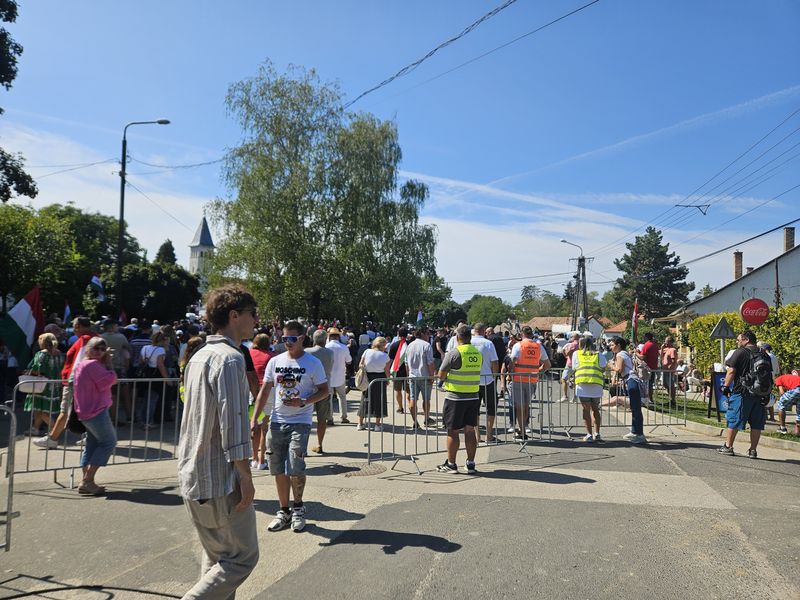 Az újságírókat és résztvevőket már a település szélén kordonok és rendőrök fogadták. A Dobozy-kúria környékére, ahol a kormányzati piknik zajlott, csak a meghívottak léphettek be. A Tisza Párt szimpatizánsai így a Hősök terén gyűltek össze, ahol színpadot állítottak fel a pártelnök beszédéhez. Akik korán érkeztek, a falu másik végén tudtak leparkolni, és akár 3 kilométert is gyalogolhattak, hogy a rendezvény helyszínére juthassanak, míg a későn érkezők ezt megúszták egy alig 900 méteres sétával.