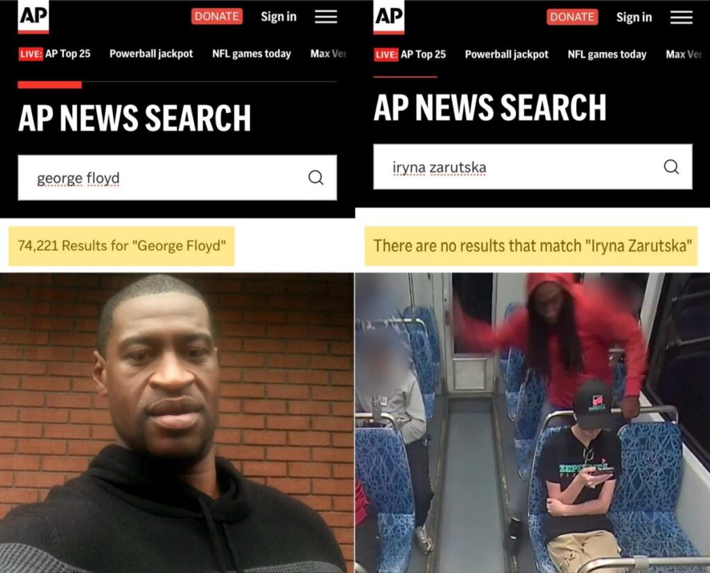 74.221 AP cikk George Floydról 0 AP cikk Iryna Zarutska-ról:
