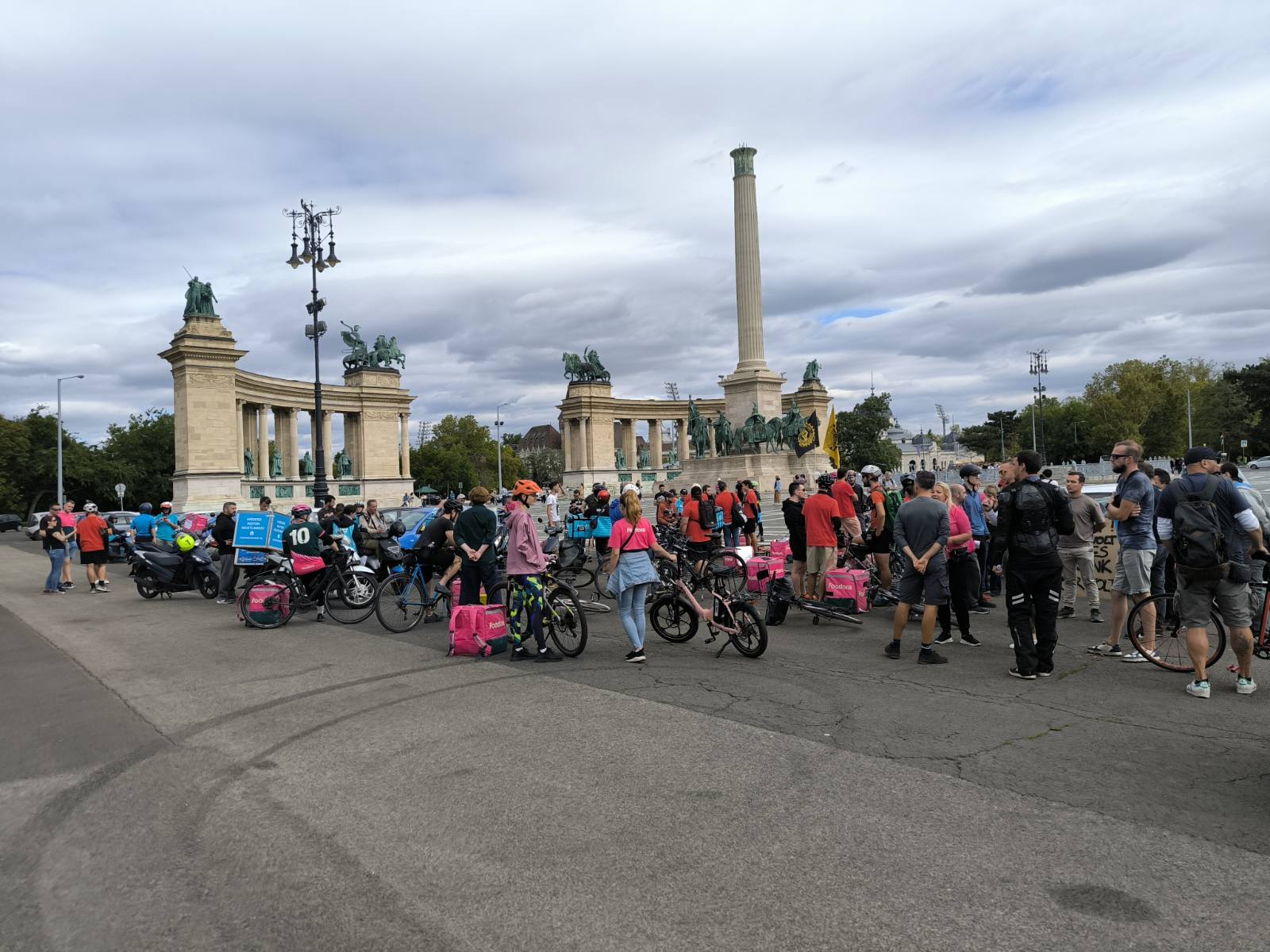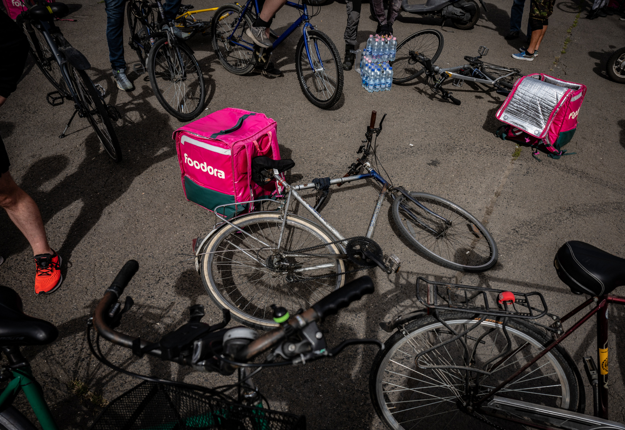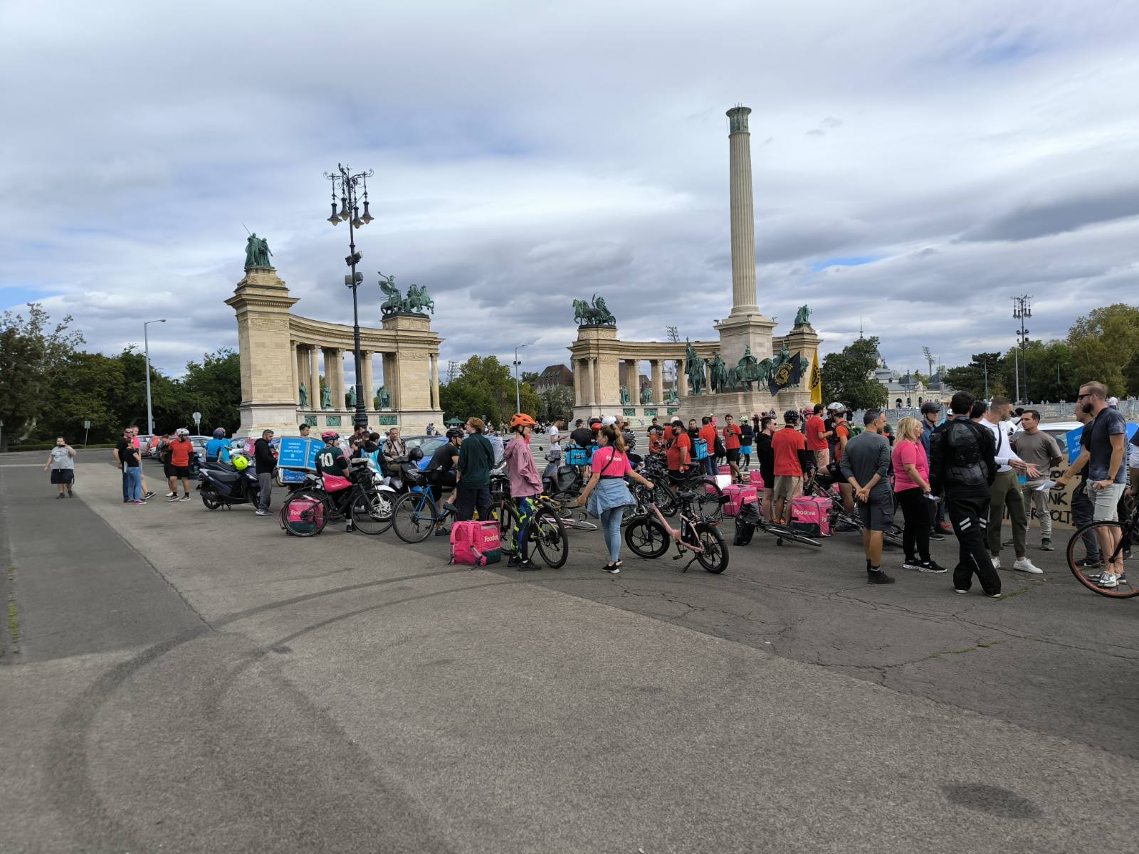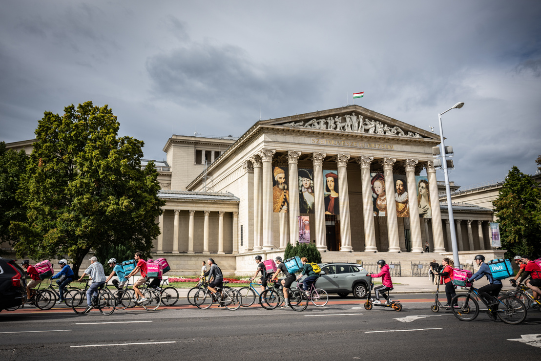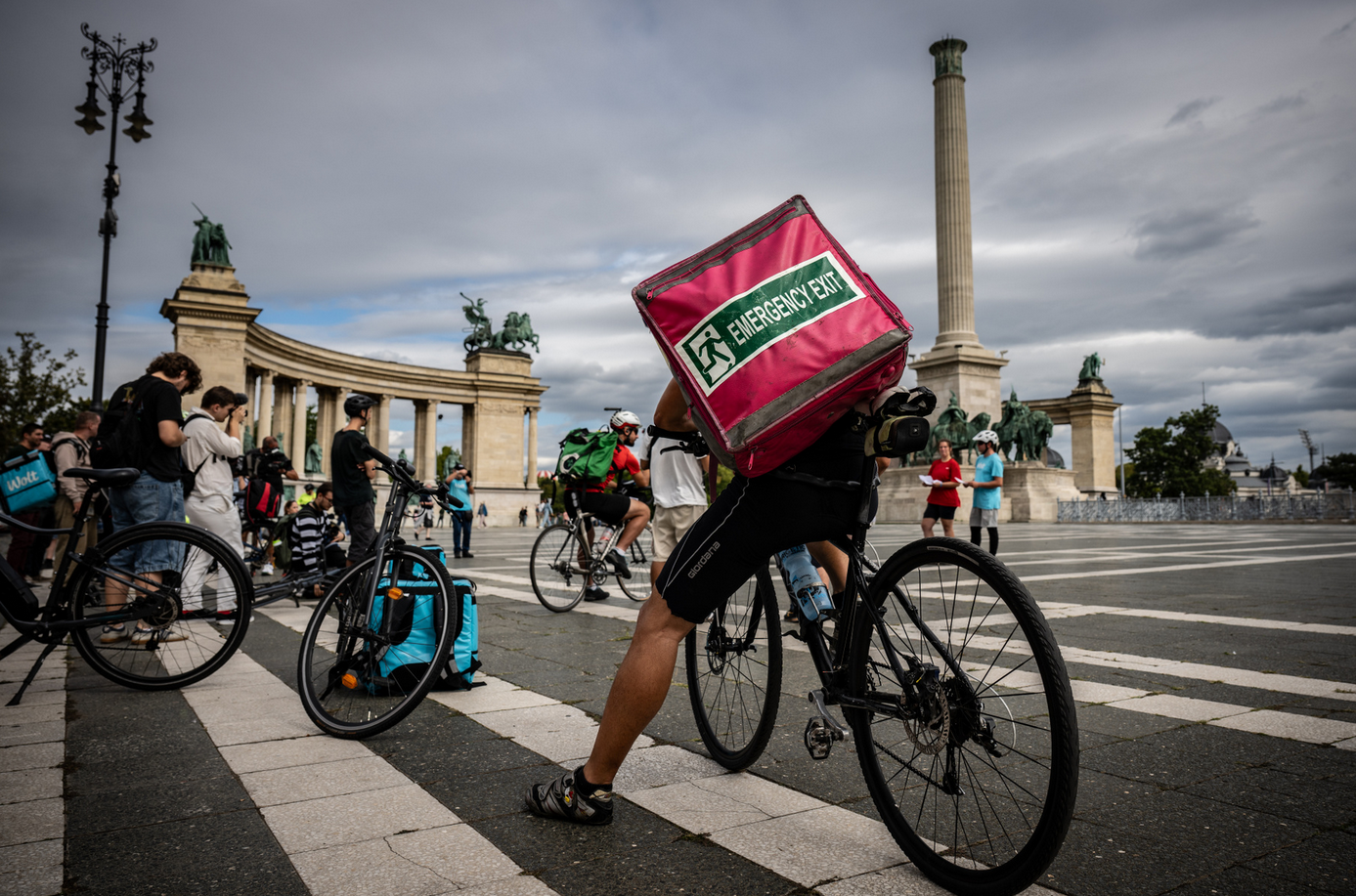 Csütörtökön magenta és kék színű hátizsákok sorjáztak a Hősök terén, de ezúttal nem ételrendelést teljesítettek a futárok, hanem tüntettek. Amíg gyülekeztek a helyszínen a biciklikkel, rollerekkel, robogókkal és autókkal érkező résztvevők, addig Tóth Gergelyt kérdeztük demonstrációjuk okairól.