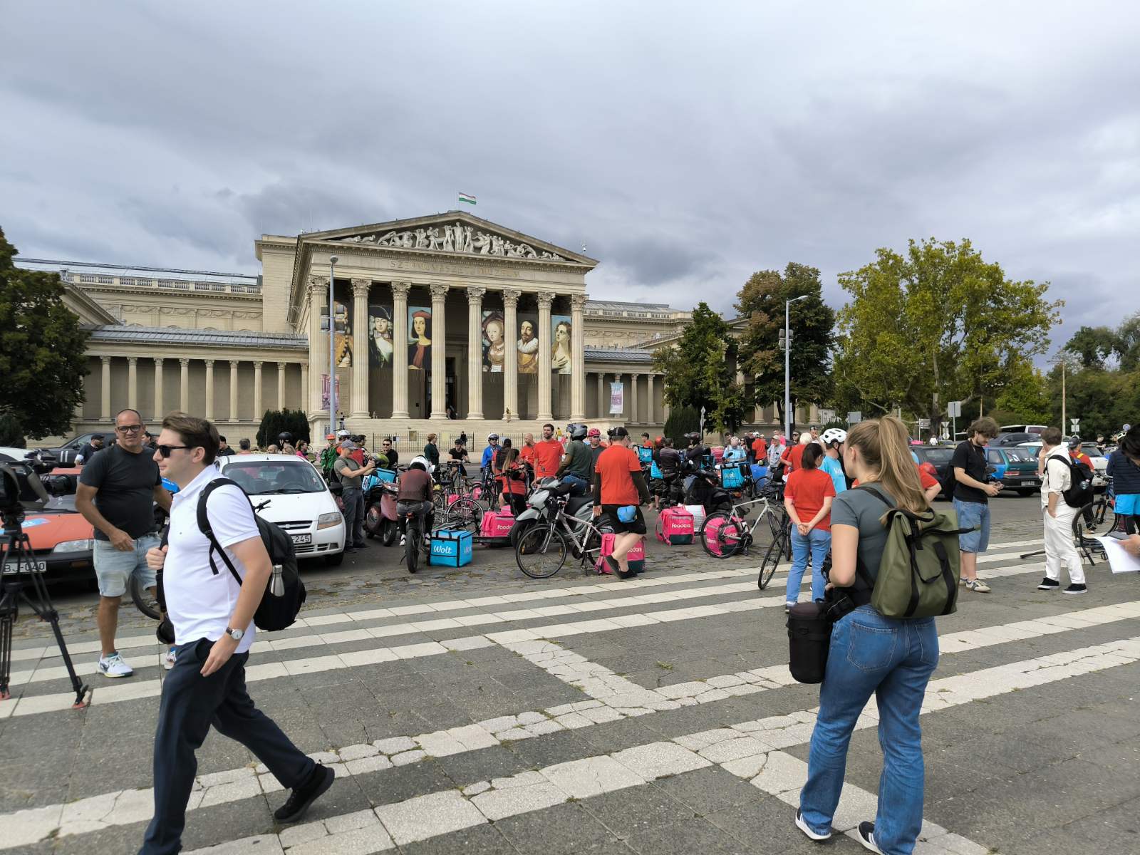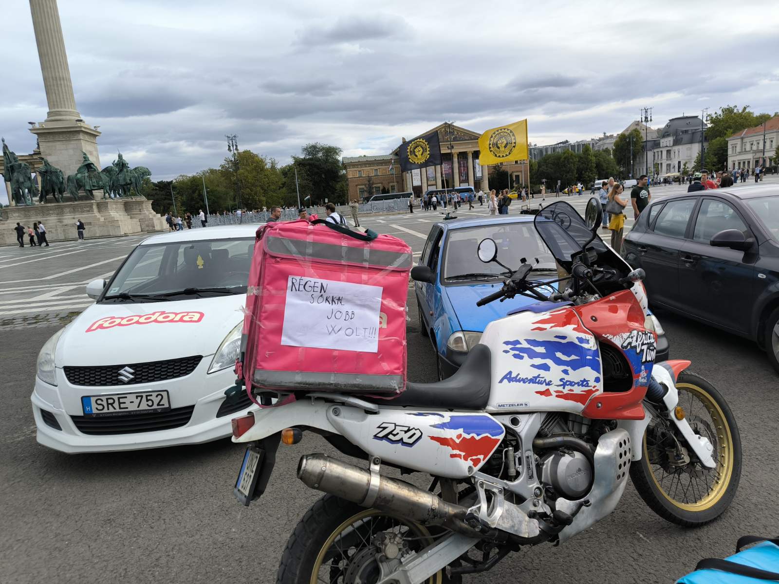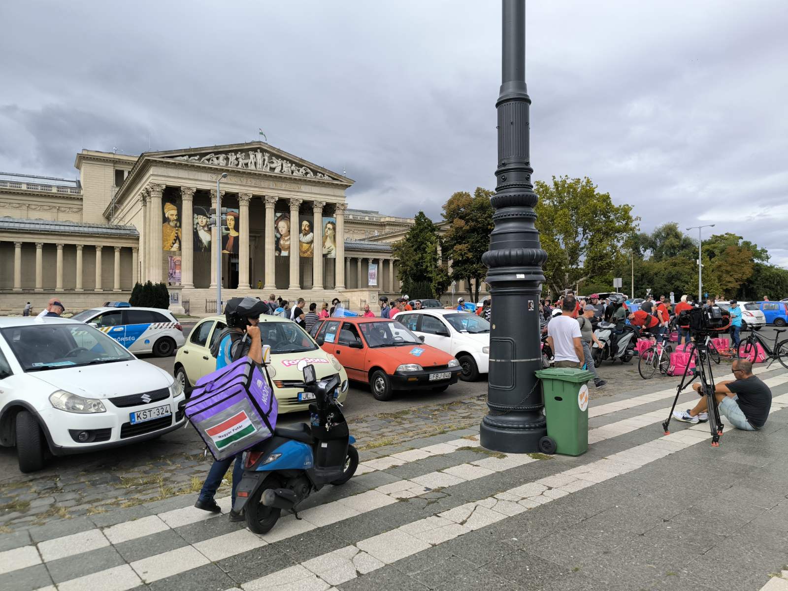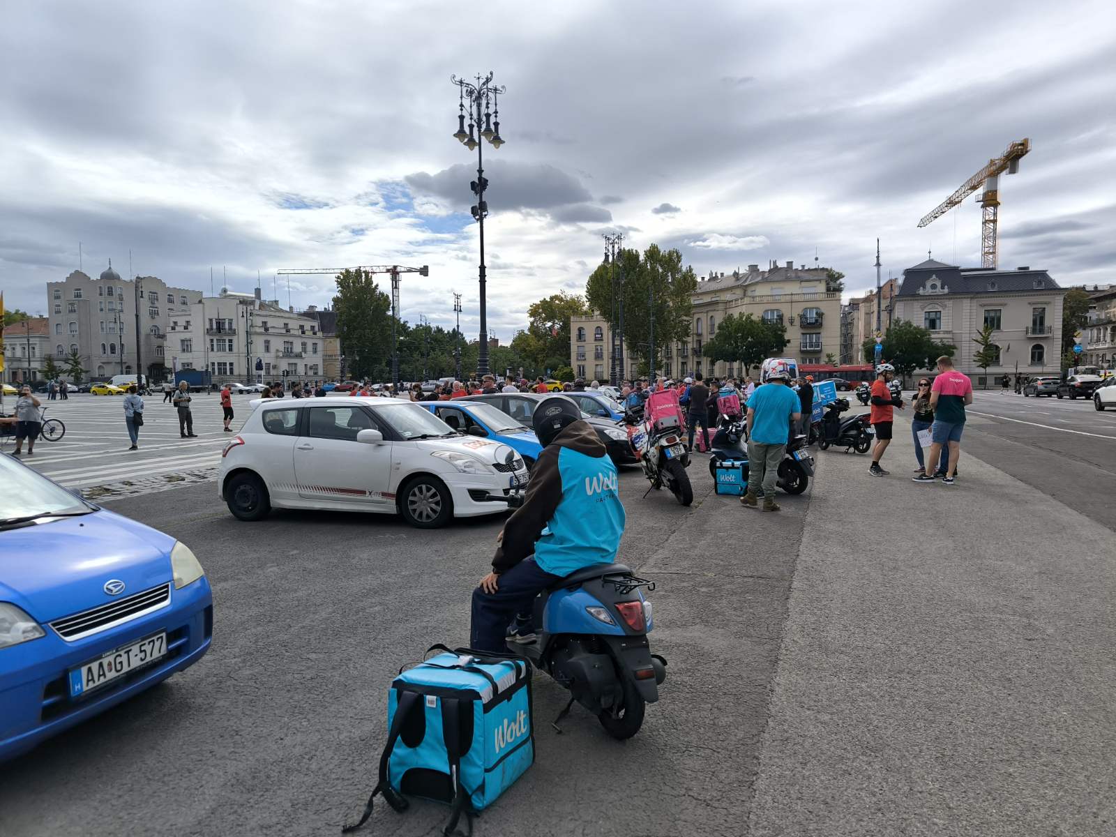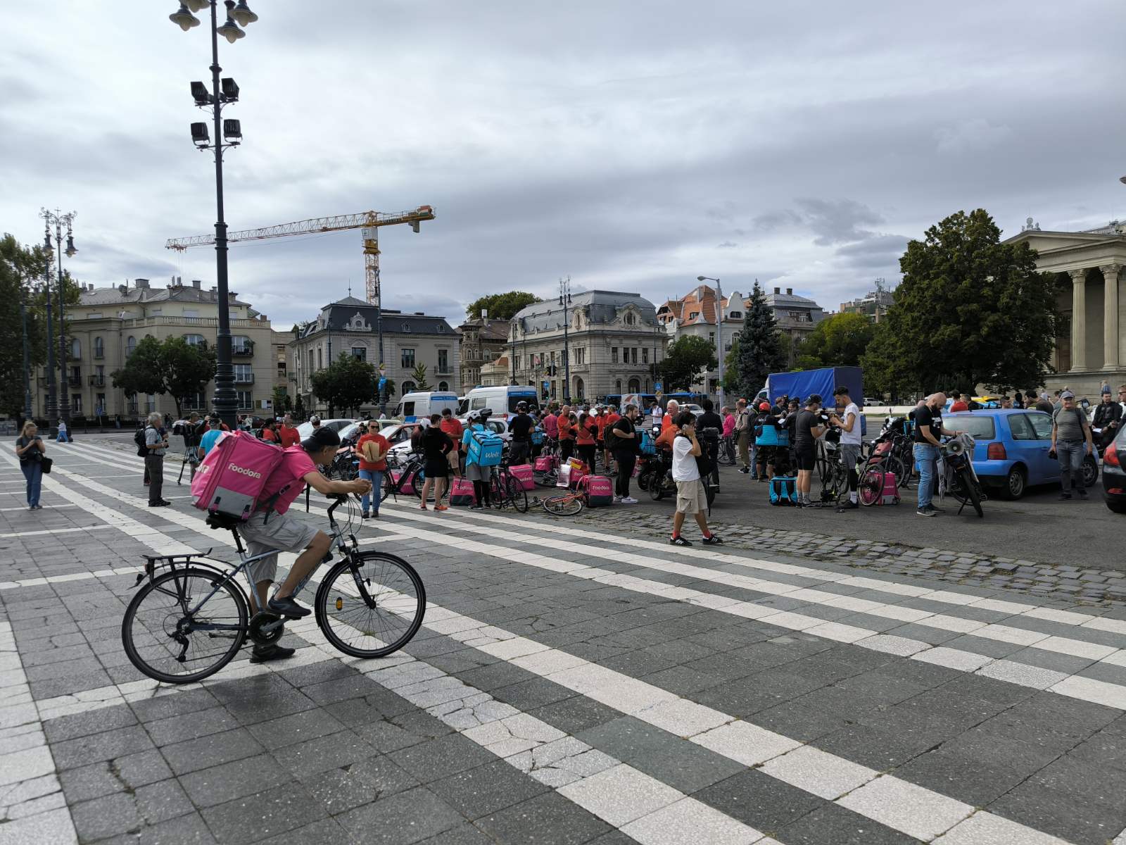 Csütörtökön magenta és kék színű hátizsákok sorjáztak a Hősök terén, de ezúttal nem ételrendelést teljesítettek a futárok, hanem tüntettek. Amíg gyülekeztek a helyszínen a biciklikkel, rollerekkel, robogókkal és autókkal érkező résztvevők, addig Tóth Gergelyt kérdeztük demonstrációjuk okairól.