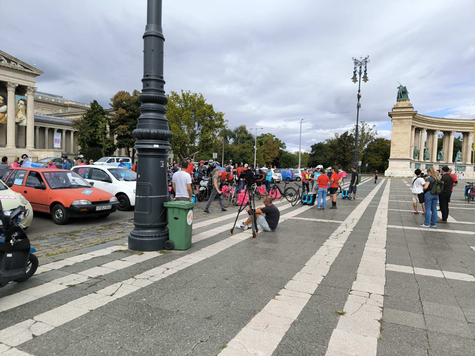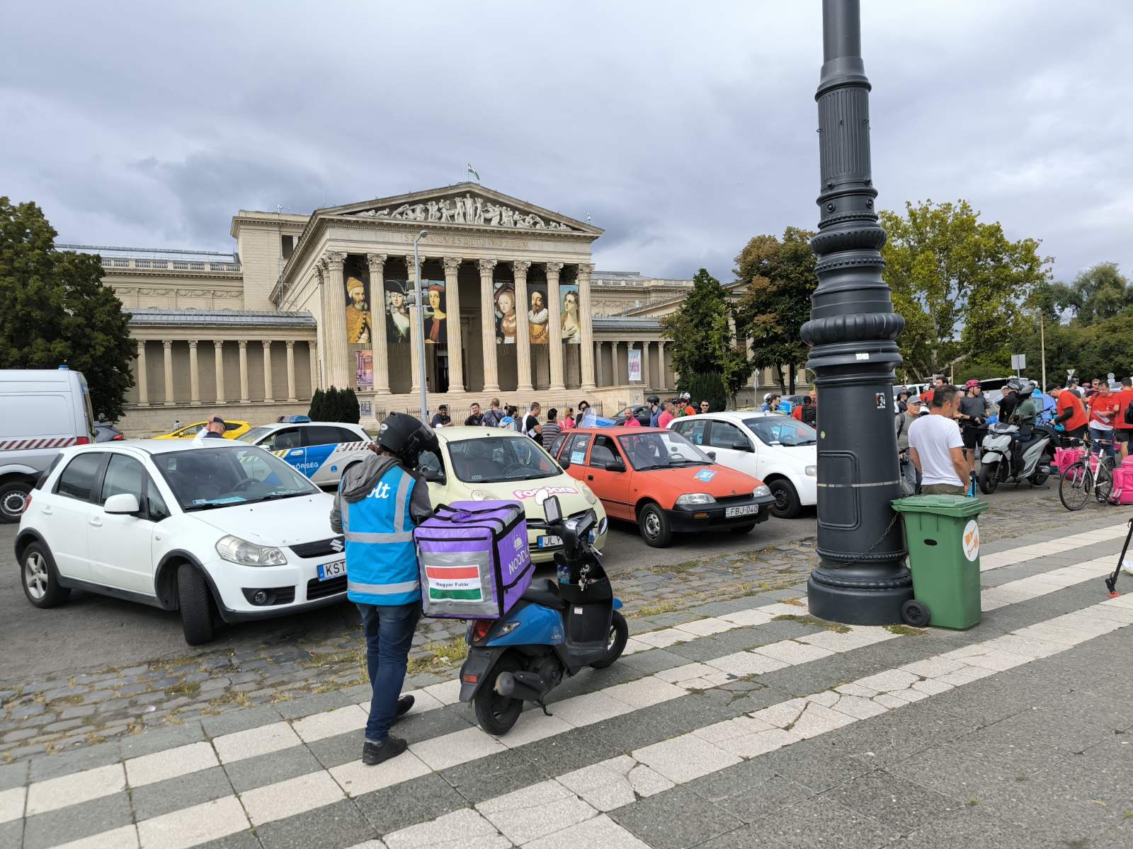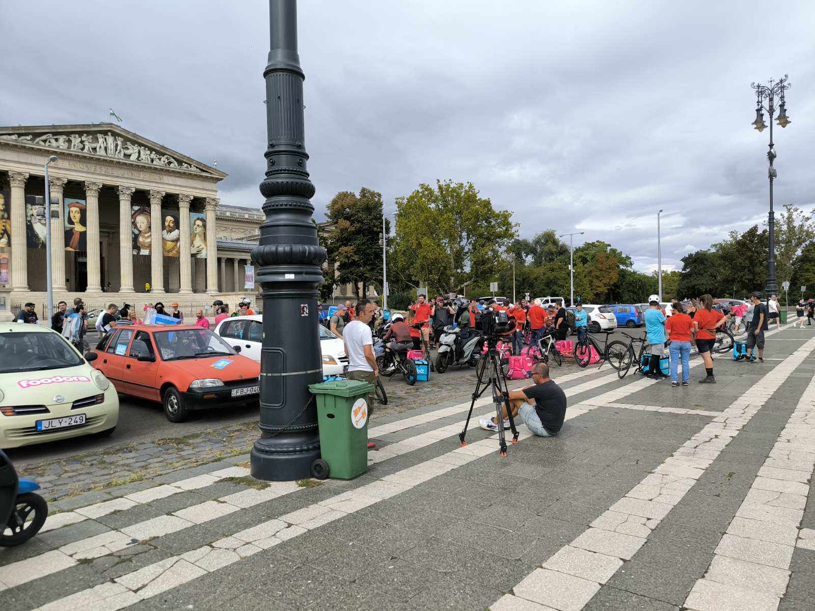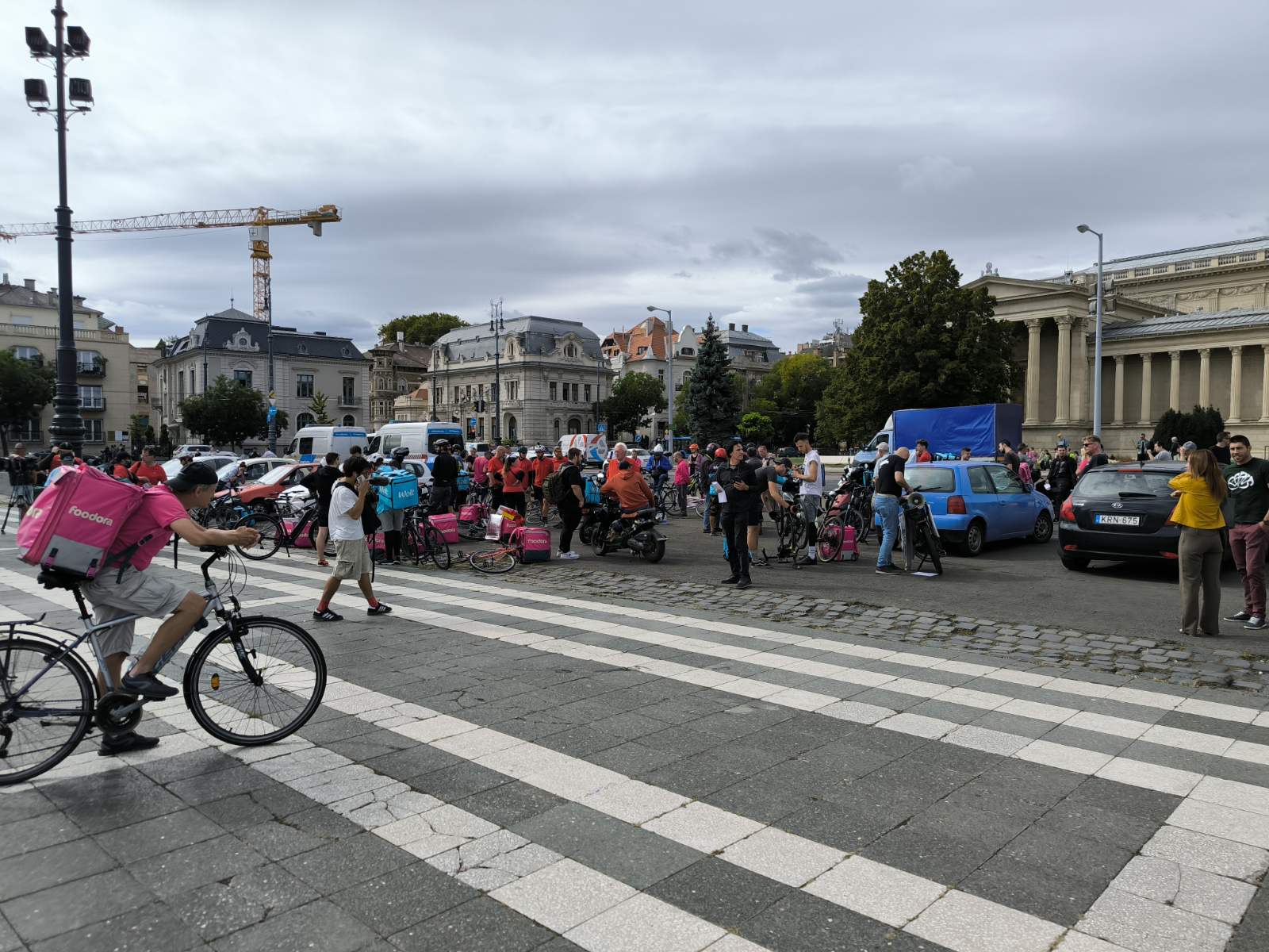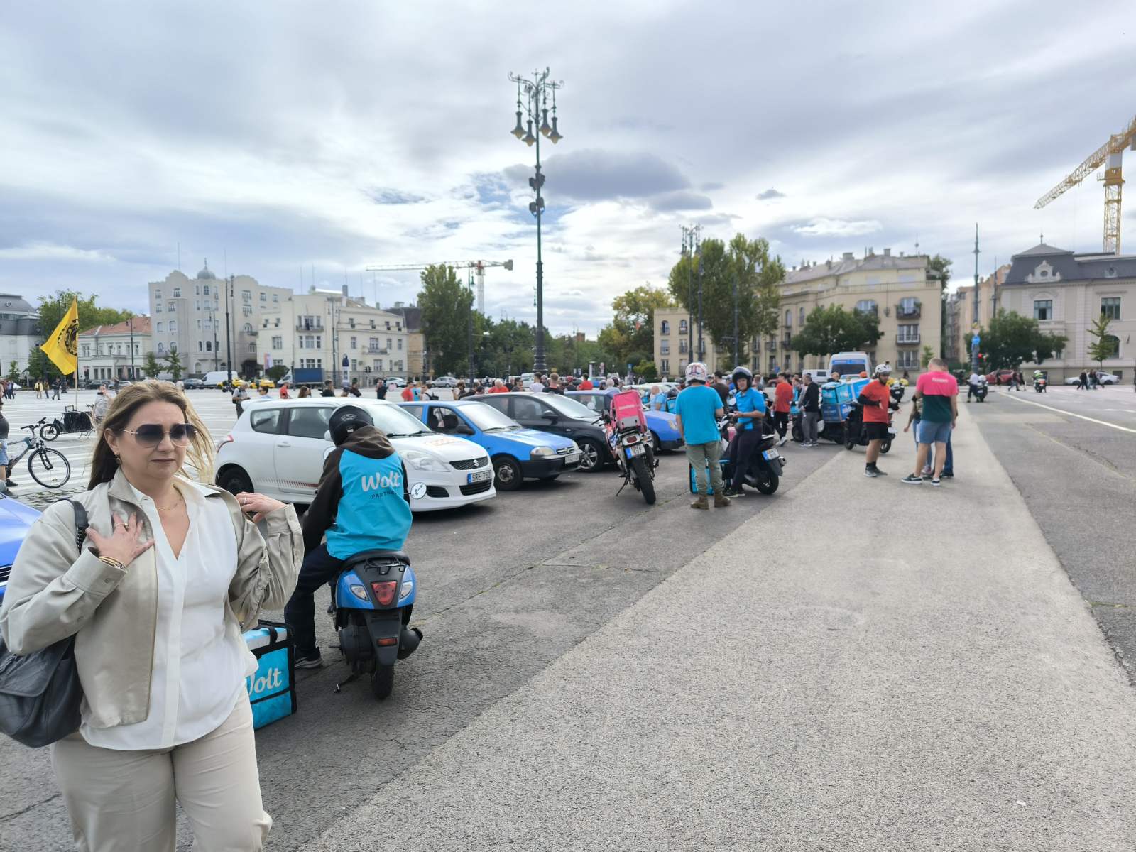 Csütörtökön magenta és kék színű hátizsákok sorjáztak a Hősök terén, de ezúttal nem ételrendelést teljesítettek a futárok, hanem tüntettek. Amíg gyülekeztek a helyszínen a biciklikkel, rollerekkel, robogókkal és autókkal érkező résztvevők, addig Tóth Gergelyt kérdeztük demonstrációjuk okairól.