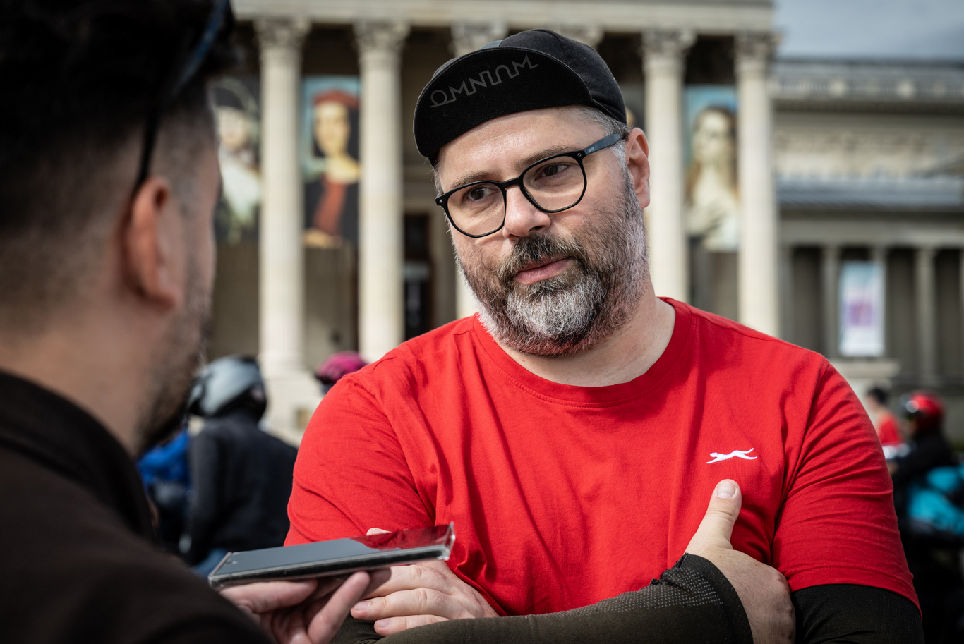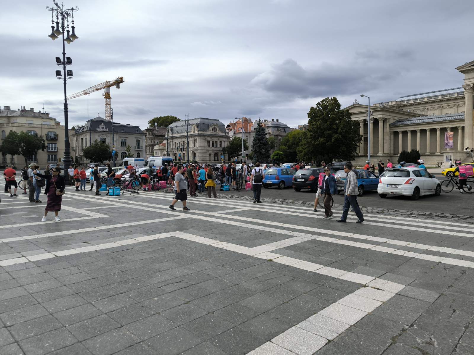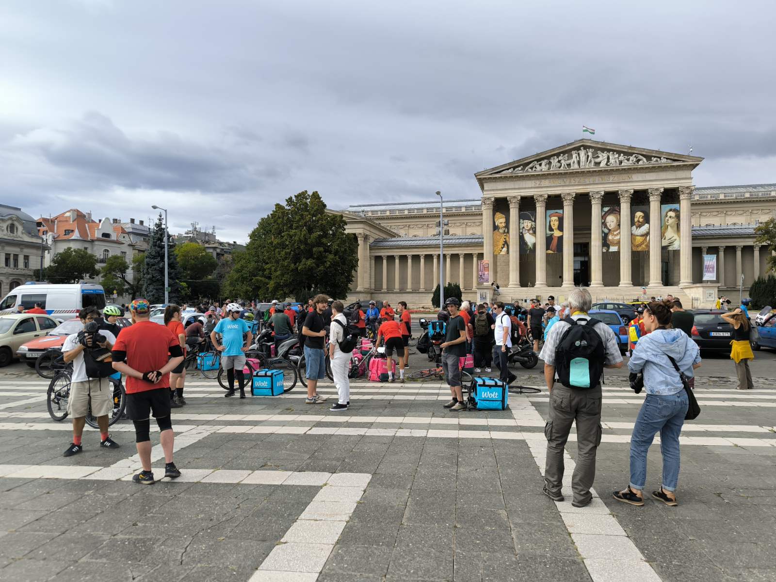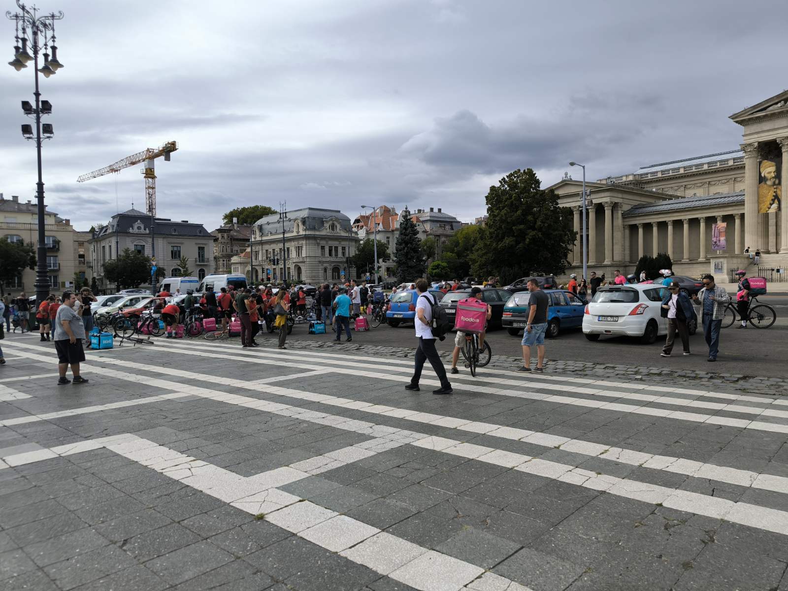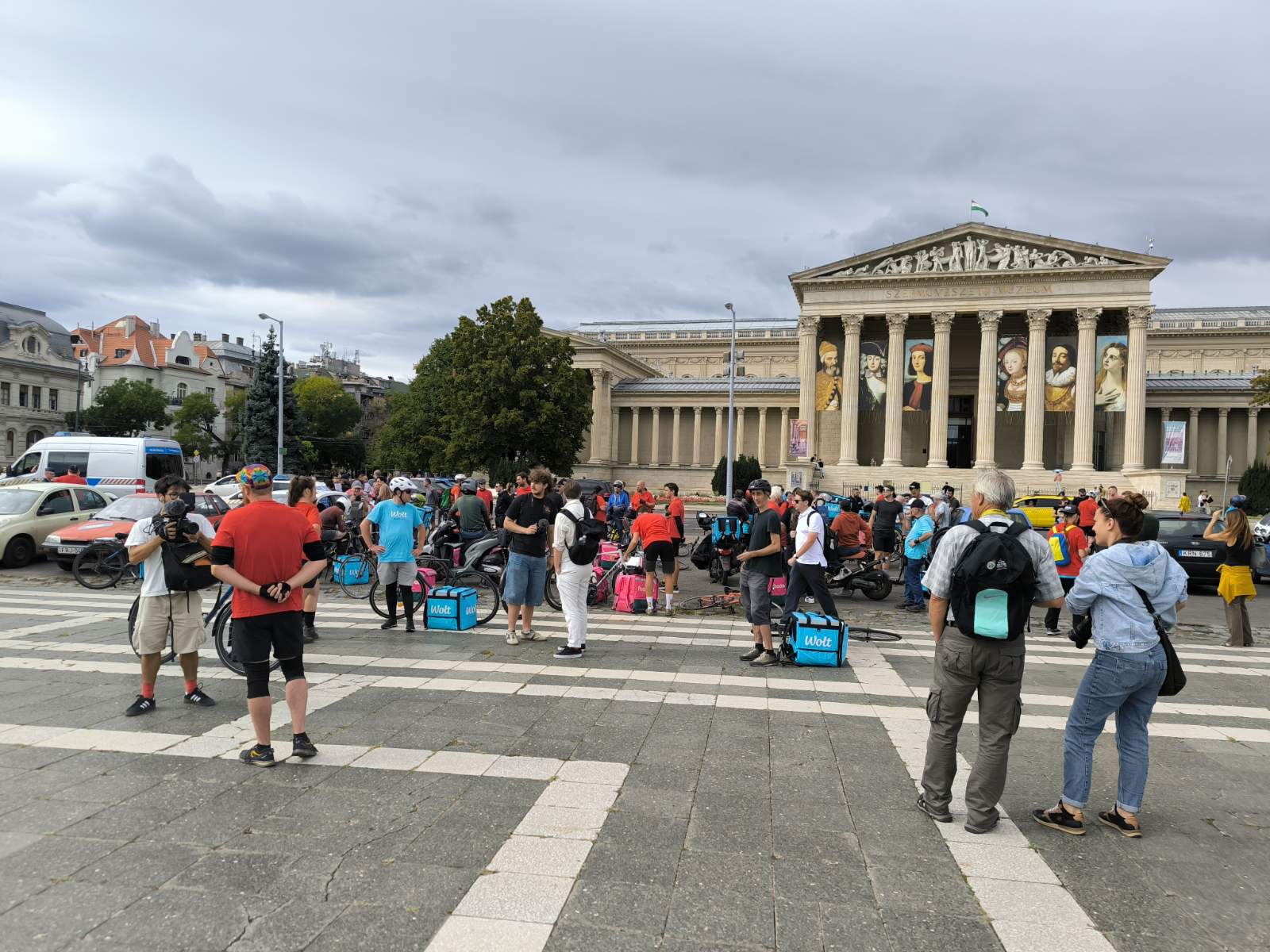Csütörtökön magenta és kék színű hátizsákok sorjáztak a Hősök terén, de ezúttal nem ételrendelést teljesítettek a futárok, hanem tüntettek. Amíg gyülekeztek a helyszínen a biciklikkel, rollerekkel, robogókkal és autókkal érkező résztvevők, addig Tóth Gergelyt kérdeztük demonstrációjuk okairól.