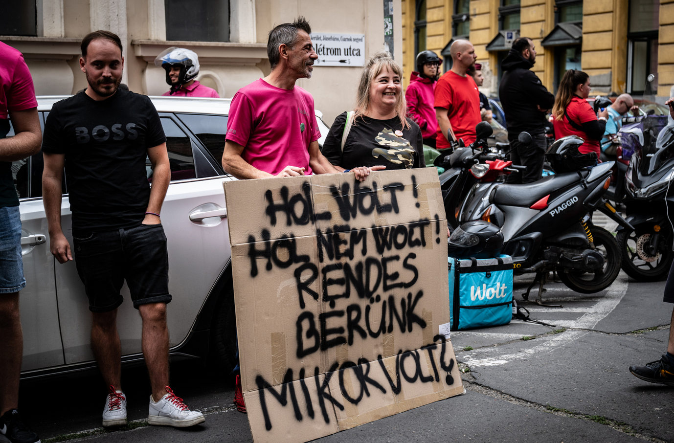 - „Követeljük a futárok díjazásának azonnali és tartós emelését, emberhez méltó órabéreket! Ne legyen kérdés, hogy ráérünk pihenni és feltöltődni. Ne legyen luxus a biztonságos műszaki állapotú jármű!