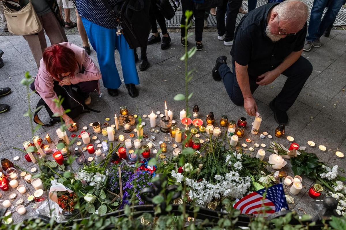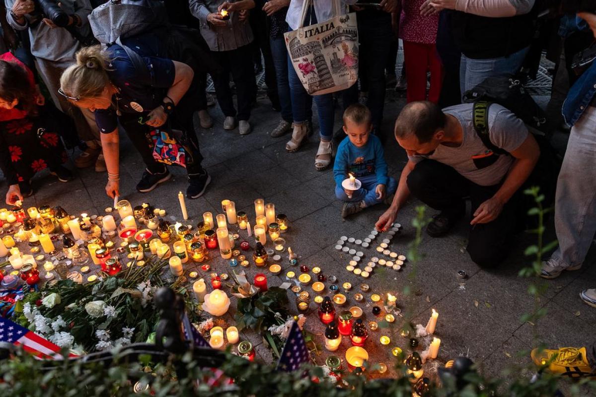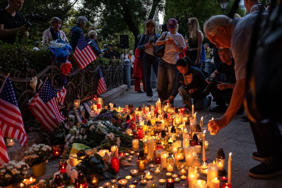 Egyre csak gyülekeztek az emberek a Szabadság téren, miután Bayer Zsolt gyertyagyújtásos megemlékezést szervezett az amerikai nagykövetség épülete elé. A Magyar Nemzet szerint még Szabó Bálint is tiszteletét tette az eseményen, közismert trombitálásával próbálta felhívni magára a figyelmet.