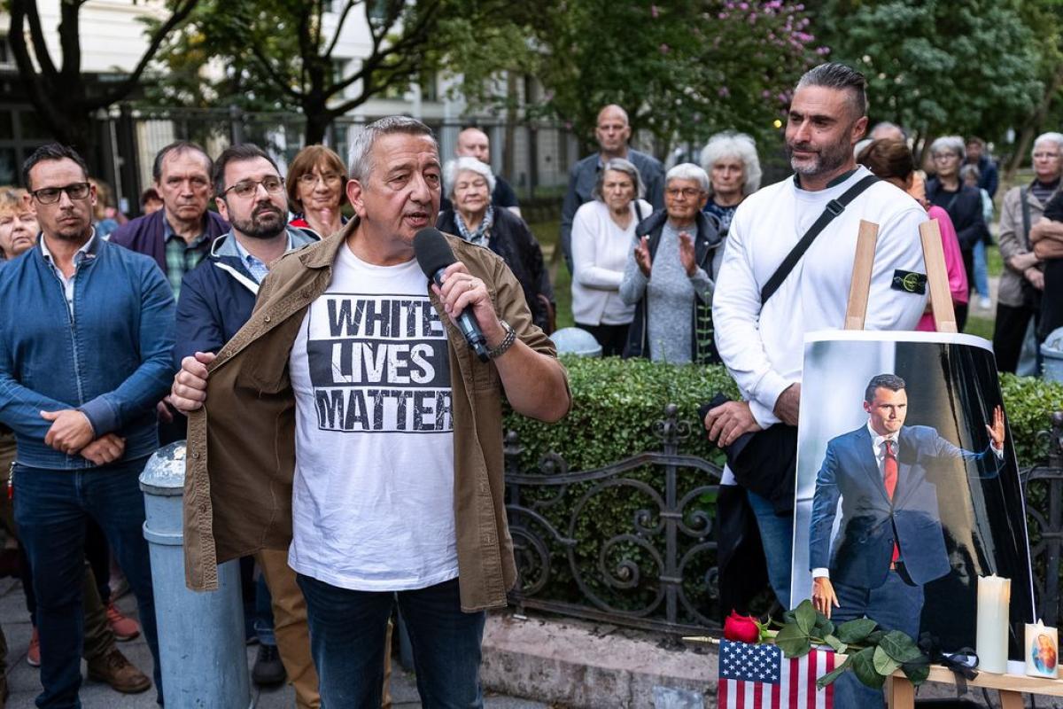 Szerintem ma mindannyian Charlie Kirk-ök vagyunk – mondta Szánthó Miklós, az Alapjogokért Központ vezetője. Úgy folytatta: Charlie Kirk-öt azért gyilkolták meg bestiális, előre megfontolt módon, mert jobboldali volt. Mert konzervatív volt, mert patrióta volt, mert hitvalló keresztény volt, mert szuverenista volt.