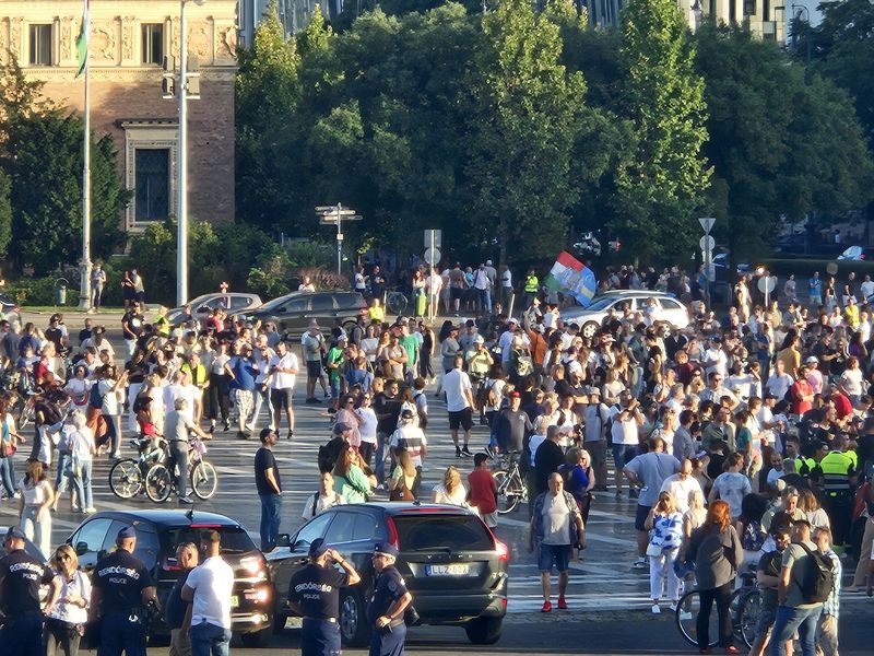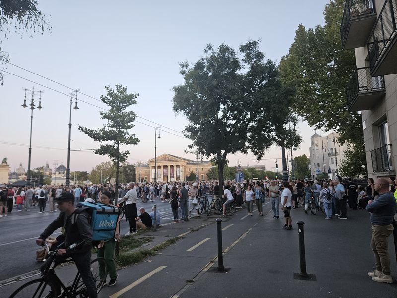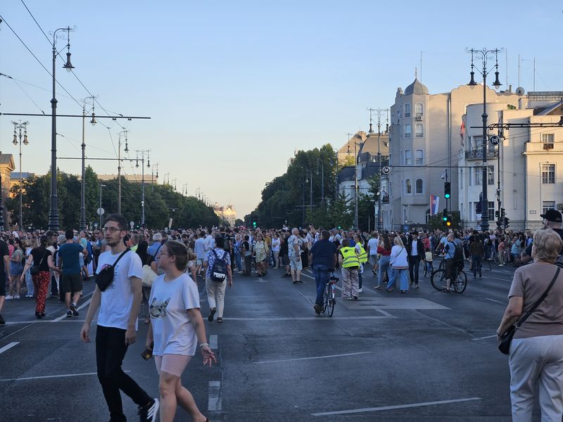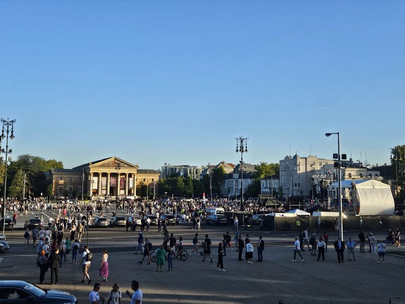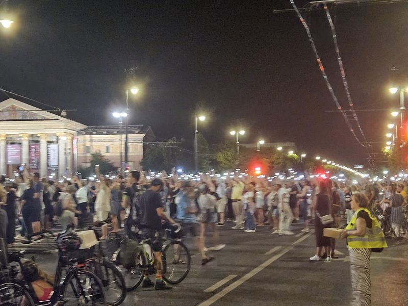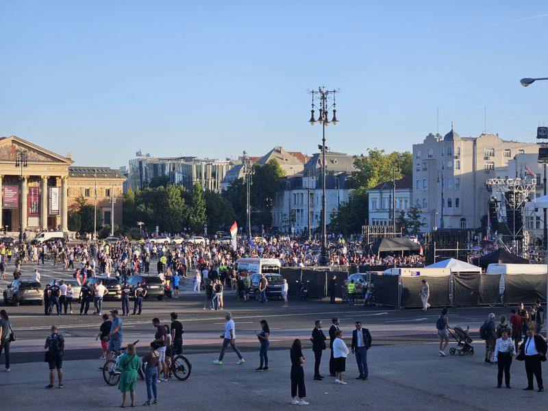 Bár az esemény kiírásában a szervezők külön kérték, hogy a demonstráción ne jelenjenek meg pártlogók és pártzászlók, a valóságban mégis feltűnt a politika: a színpad közelében ott állt a Tisza Párthoz köthető Kontroll standja, ahol Magyar Péter választási kampányanyagait osztogatták, míg a tömeg szélén a Tisza adománygyűjtő robotkutyája járkált. A szimbolikus ellentmondás ellenére a rendezvény alapvetően kulturális és civil kiállás volt, amely a szabad közterekért és a tisztább közbeszédért emelte fel a szavát.