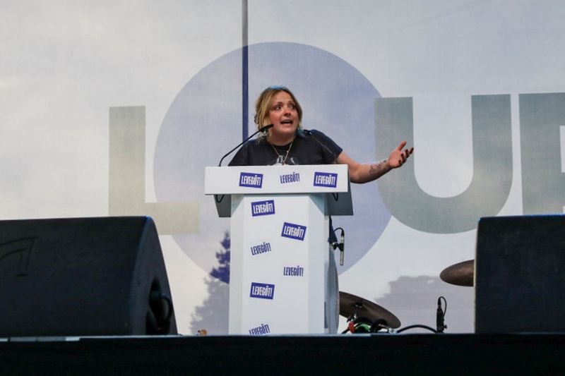 A színésznő szóvá tette a kegyelmi botrány lezáratlanságát is: „Még mindig nem tudjuk, kinek a kérésére részesült kegyelemben egy pedofil bűnsegéd, és kik voltak azok a magas rangú fideszes politikusok, akiknek a Szőlő utcai intézet igazgatója gyerekeket szolgáltatott.”