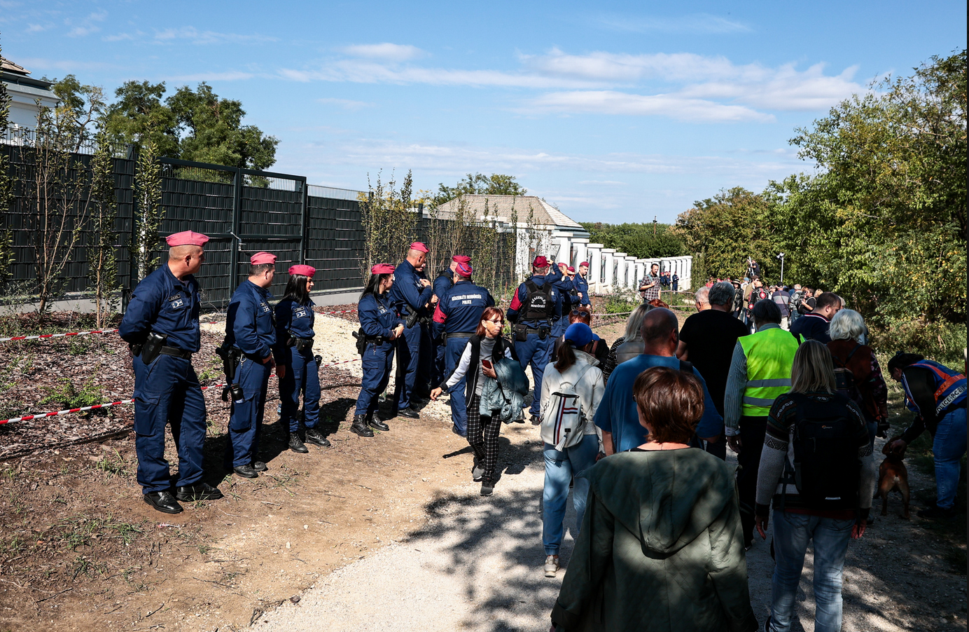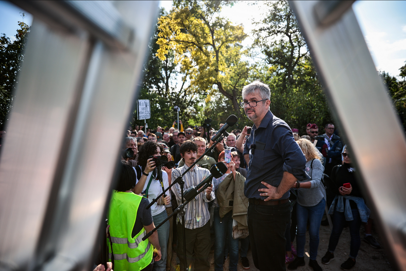 A beszédek után a tüntetők elindultak körbejárni a területet Hadházy Ákos vezetésével.
