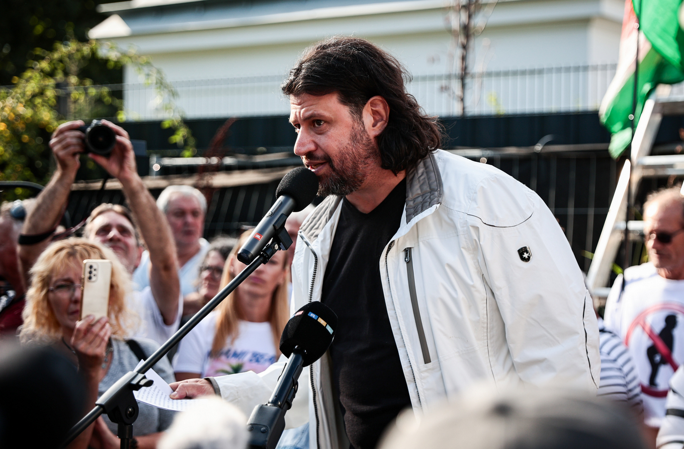 Időközben pedig Puzsér Róbert is megérkezett a helyszínre, úgyhogy hivatalosan is kezdetét vette a tüntetés.