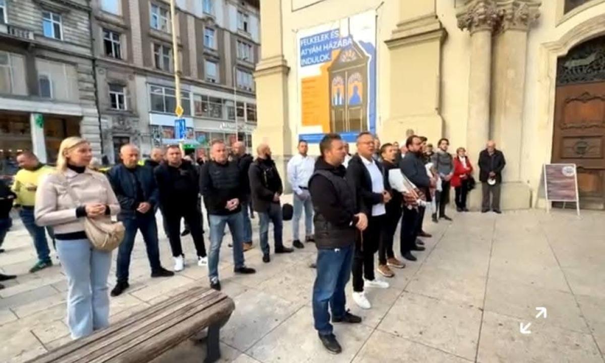 Hadházy Ákos ezután az előző heti incidensre, valamint a rendőrsorfal túloldalán imádkozókra utalva közölte: „Hallom, mondják, hogy ott imádkoznak a fociszerető fiatalemberek. Majdnem minden nap szoktam imádkozni. Azt kérem, hogy aki közülünk hitre törekvő ember, mondja el a Mi Atyánkat. A nagyapám református lelkész volt.”