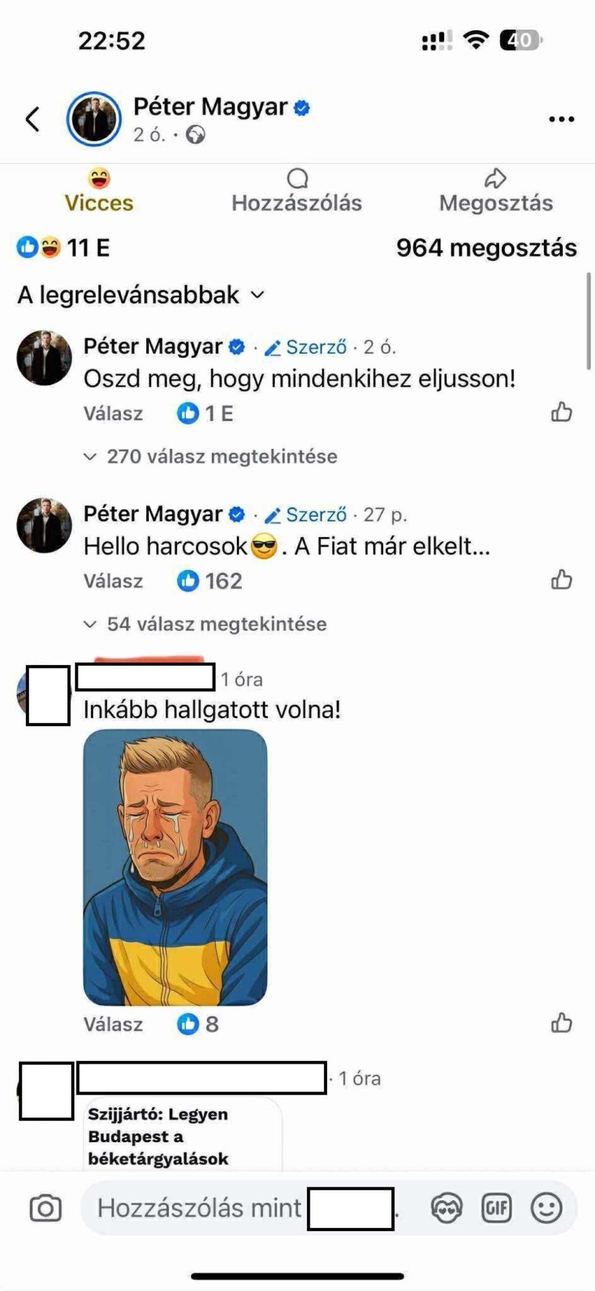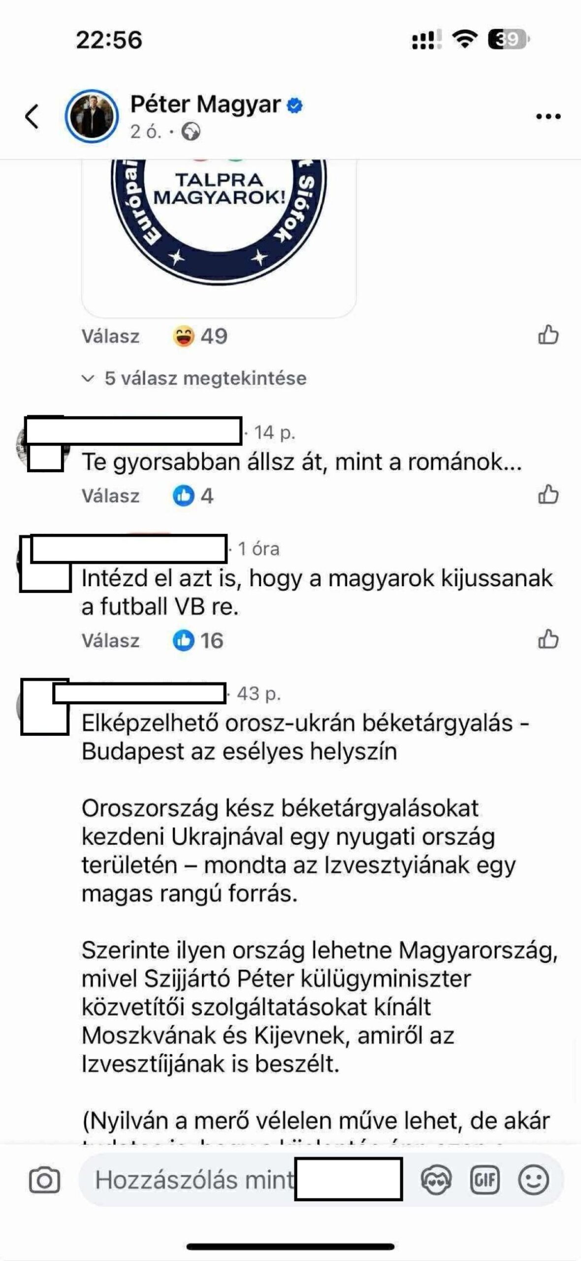 Nos, az idő igazolta a fentieket, Magyar Péter a nagy bejelentés után azonnal igyekezett magára irányítani a figyelmet a közösségi oldalán, miszerint ők is javasolták a budapesti tárgyalást!