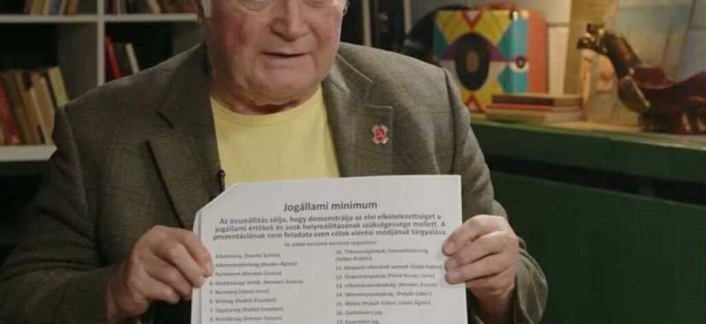 Kéri elmondta, hogy a jogászok csapata arra készül, hogy elfogadtasson a közvéleménnyel egy jogállami minimumot, amiről azt mondta, hogy az nem egy párthoz kötődik. Ezután Kéri a szokásos baloldali paneleket pufogtatva a jogállamiság helyreállításáról értekezett.