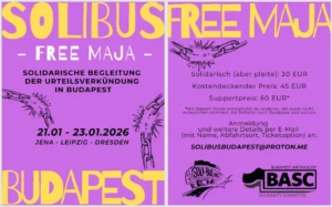 A közös busz, melyet a Budapest Antifascist Solidarity Commitee (BASC) oldalán hirdettek meg, Jénából indul majd január 21-én, és Lipcsén valamint Drezdán keresztül jutna el Budapestre. Háromféle jegytípust hirdetnek, melyeket a solibusbudapest@proton.me címen regisztrálva lehet megváltani. Az egyszerű támogató jegy 30 euró, ám ezzel nem lehet felszállni a buszra. Az utazás 45 euróba kerül, míg egy 60 eurós jegyet is lehet váltani, ebben az esetben: „elkísérhet téged valaki, aki egyébként nem engedhetné meg magának az utat”.