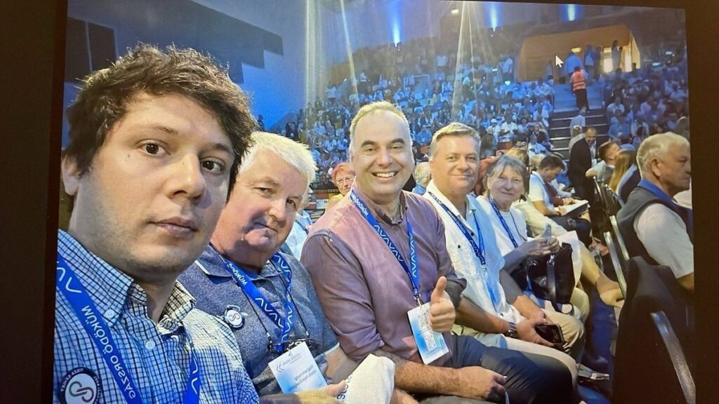 Rosta Bendegúz a Tisza Párt júliusi kongresszusán (balról az első)