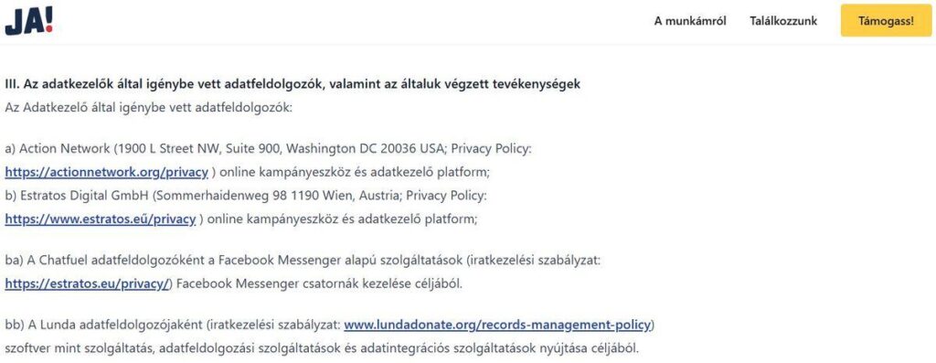 Az azonban már bizonyos, hogy a SZIV (ezáltal Jámborék) támogatóinak adatai akár Ficsor Ádámékhoz is kerülhetnek, mivel az adatkezelési tájékoztatójukban (Jámborék oldalán) felbukkan a Lunda neve, amely egy globális megoldás kis összegű adománygyűjtésre. A Lunda szolgáltatását az Estratos Digital GmbH nevű bécsi cég nyújtja, amely sajtóinformációk szerint Ficsor érdekeltsége.