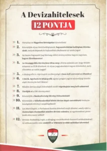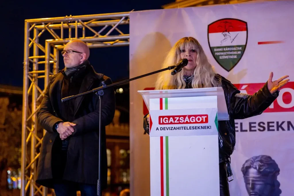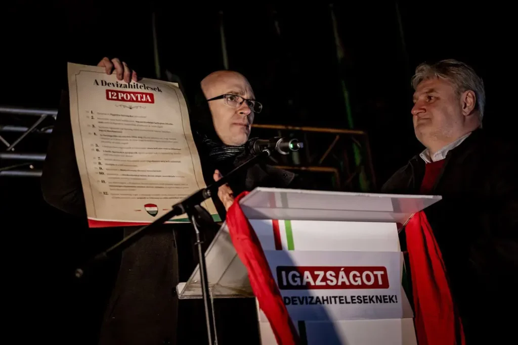 A Banki Károsultak Fogyasztóvédelmi Szövetsége demonstrációján közfelkiáltással fogadták el a devizakárosultak 12 pontját, melyeket Z. Kárpát Dániel és Marczingós László fogalmaztak meg.