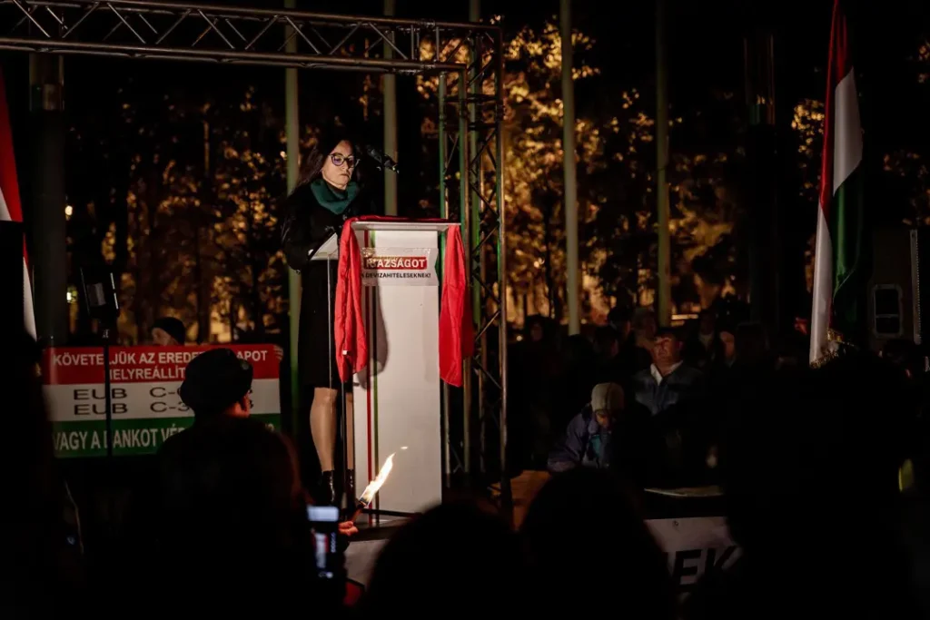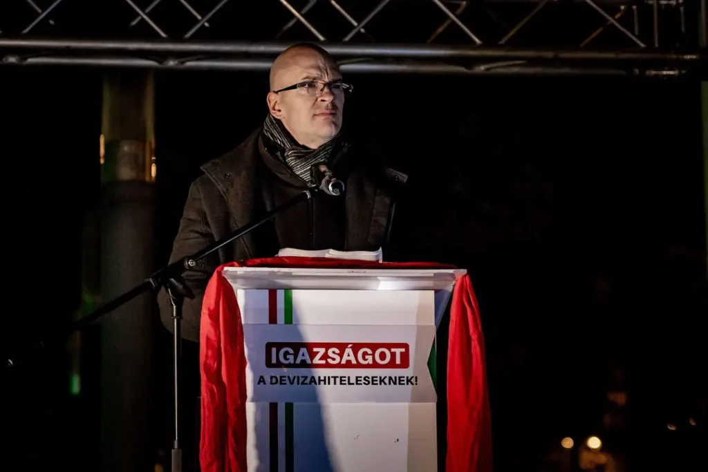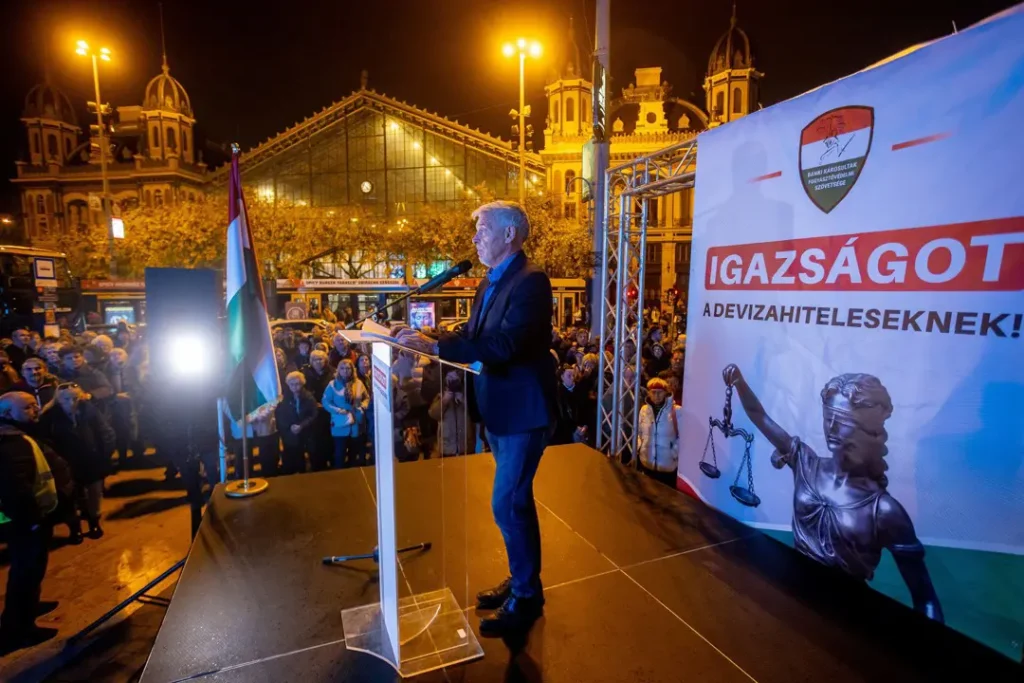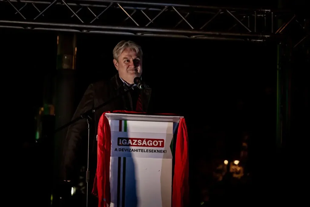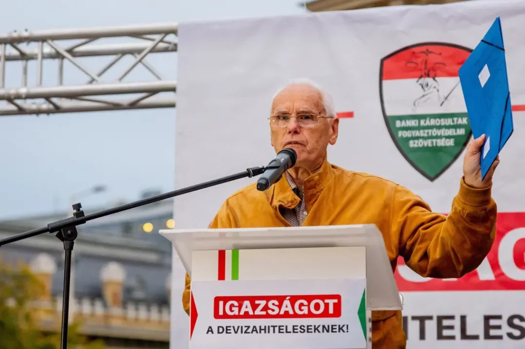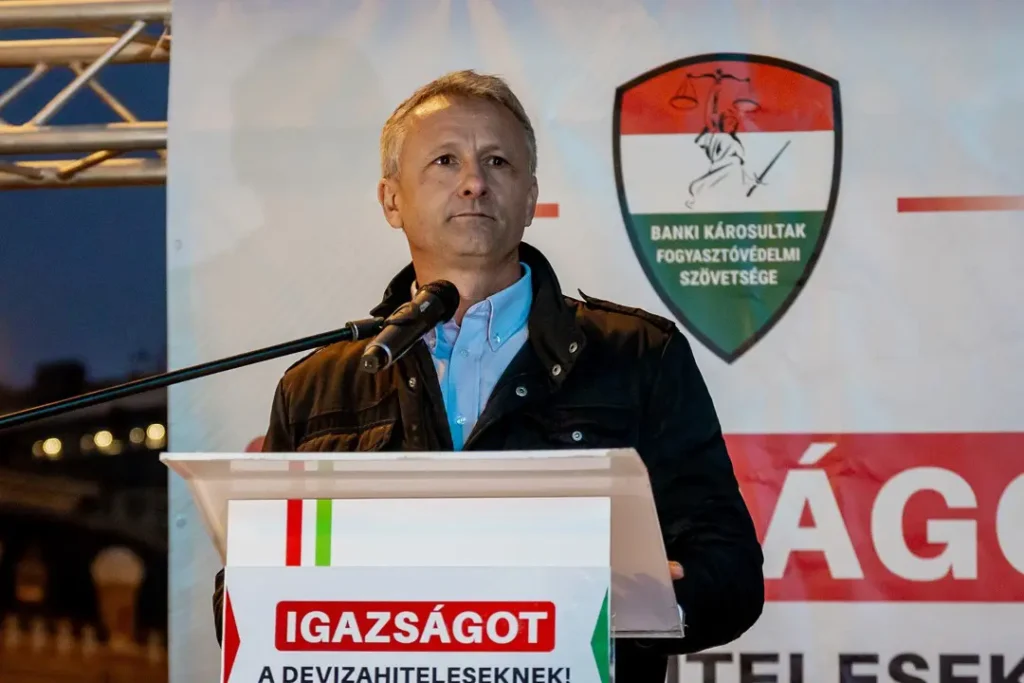 Felidézte azt is, Ambrus Attila 196 millió forintot rabolt, amiért 17 év szabadságvesztést kapott, a bankok pedig – mint mondta – 8 ezer milliárd forinttal károsították meg a devizásokat, és „még senki sincs börtönben”. Úgy vélte, ez az ördög parlamenti csápjainak, a kétharmados kormánytöbbségnek tudható be. Szerinte ezek a képviselők „vagy hülyék, vagy pedig nem hülyék, csak nem a devizakárosultakkal vannak”. Kiemelte, ezért 2026 áprilisában el kell zavarni az „ördög összes csatlósát”. Úgy vélte, azért kell ezt tenni, mert ennek a 8 ezer milliárd forintnak az eltüntetését valaki segítette.