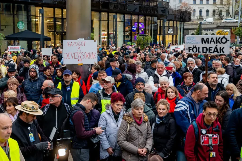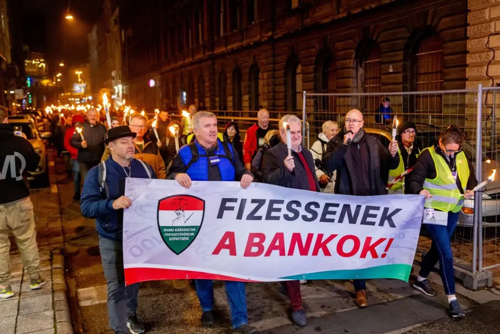 lángol a Bank Center előtti tér a devizakárosultak felvonulási fáklyáitól, a hatalom is látta, milyen sokan vannak, ezért a devizásokat többé nem lehet félresöpörni.