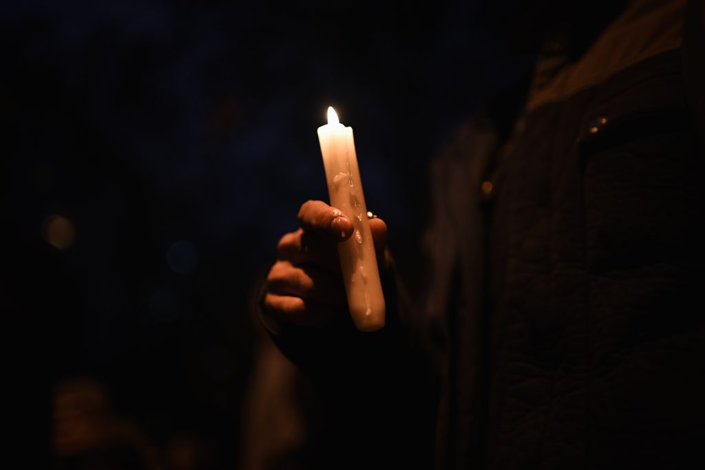 A résztvevők mécseseket és gyertyákat gyújtottak, amelyeket az intézet előtti járdán, a közeli fák tövében, valamint az épület könnyen elérhető párkányain helyeztek el.
