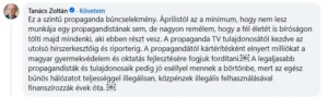 Ehhez Tanács Zoltán, a Tisza politikusa és egyik vezetője az alábbi, helyesírási hibáktól hemzsegő kommentet volt képes kiizzadni magából: