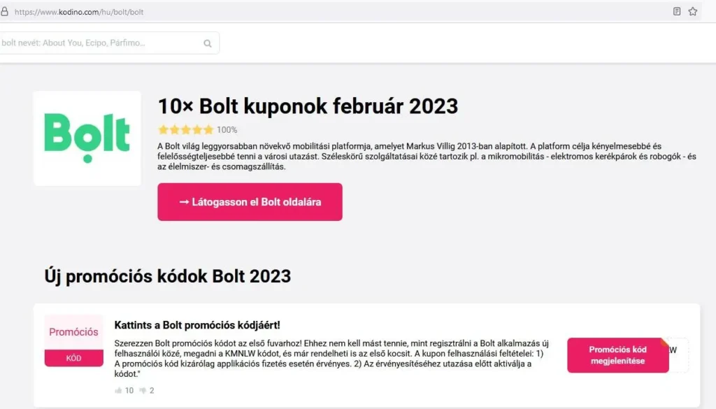 2023-ban kiadott Bolt-kupon (Képernyőmentés forrása: Yellow Cab)