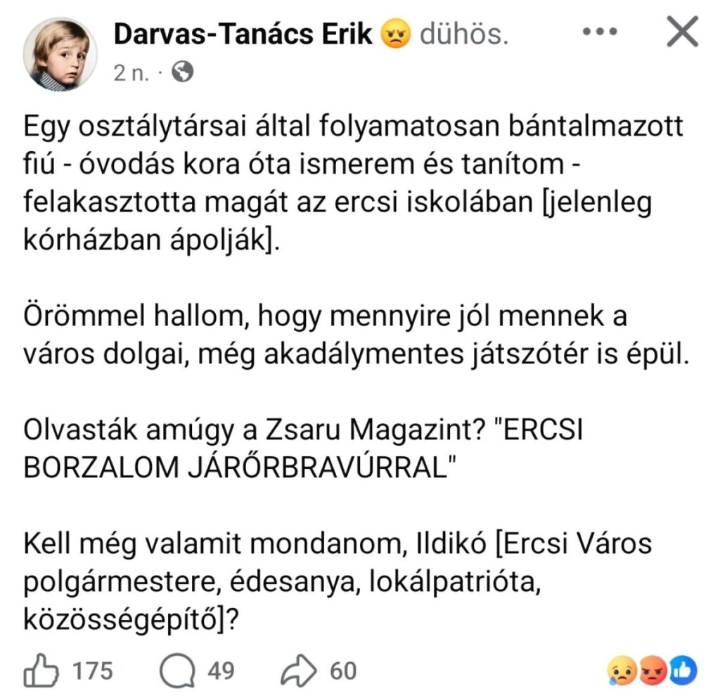 A HVG helyi forrásai alapján azt írja, hogy a fiú ötödikes és osztálytársai régóta bántalmazták verbálisan és fizikailag is.