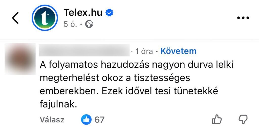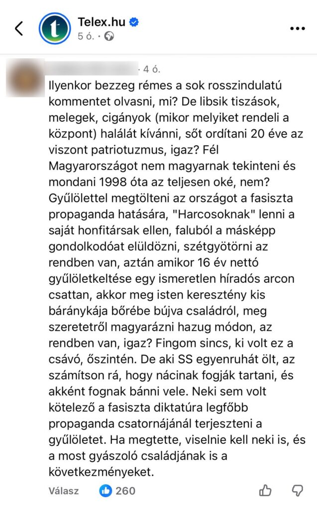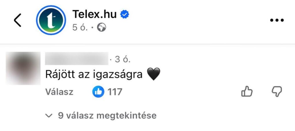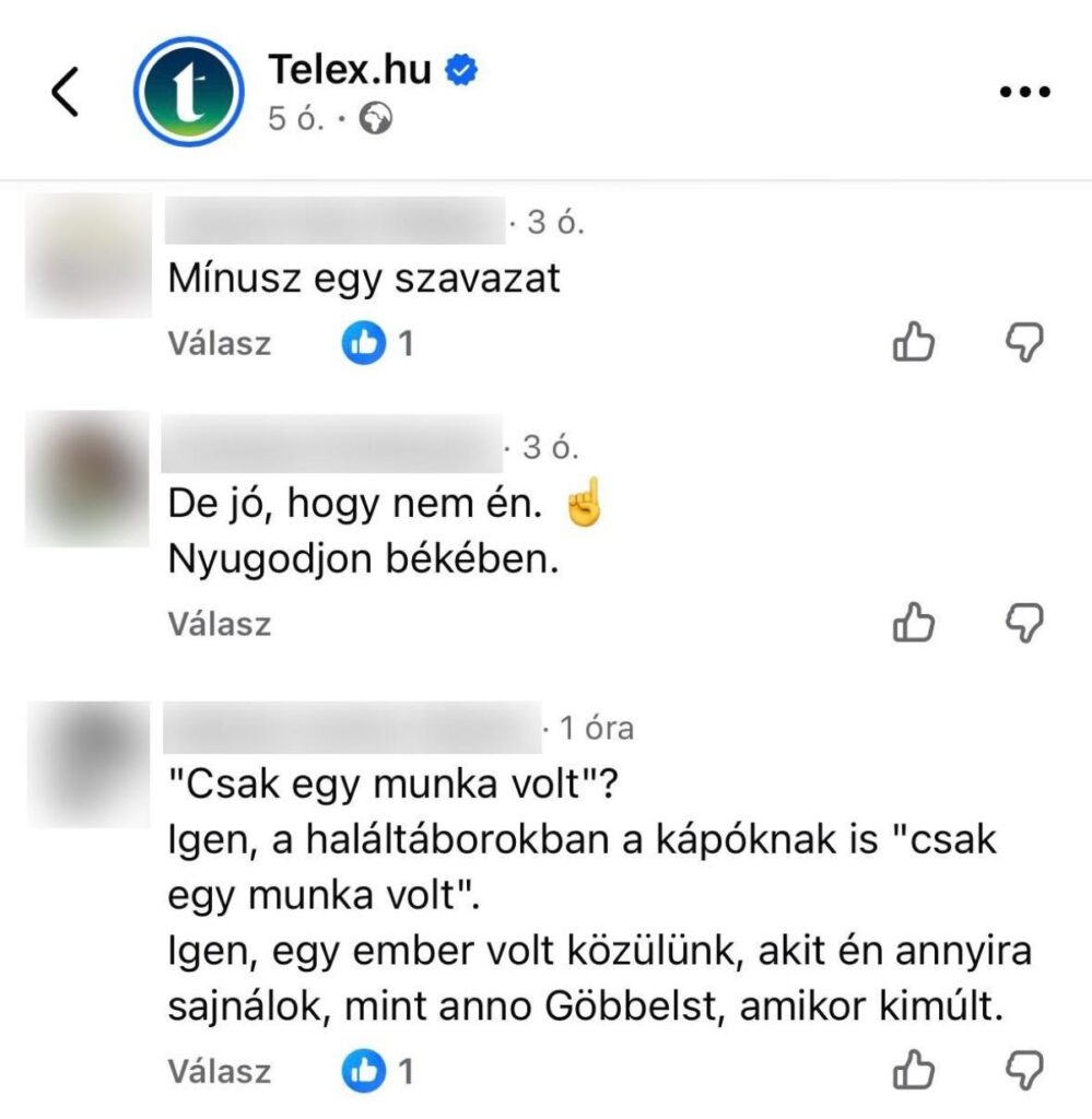 A Telex.hu médium hivatalos Facebook-oldalát követő felhasználókon ugyanis láthatóan nincs fék, a kommentek között többen is örömüket fejezték ki azzal kapcsolatban, hogy meghalt a közmédia egyik munkatársa.
