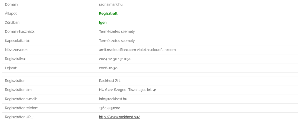 Közben kiderül, hogy nem egyetlen domainről van szó. A radnaimark.hu, a kollarkinga.hu és a tarrzoltan.hu, a kuljaandras.hu és a többi „nagy név” ugyanazon a napon, ugyanott, azonos körben kerül lefoglalásra.