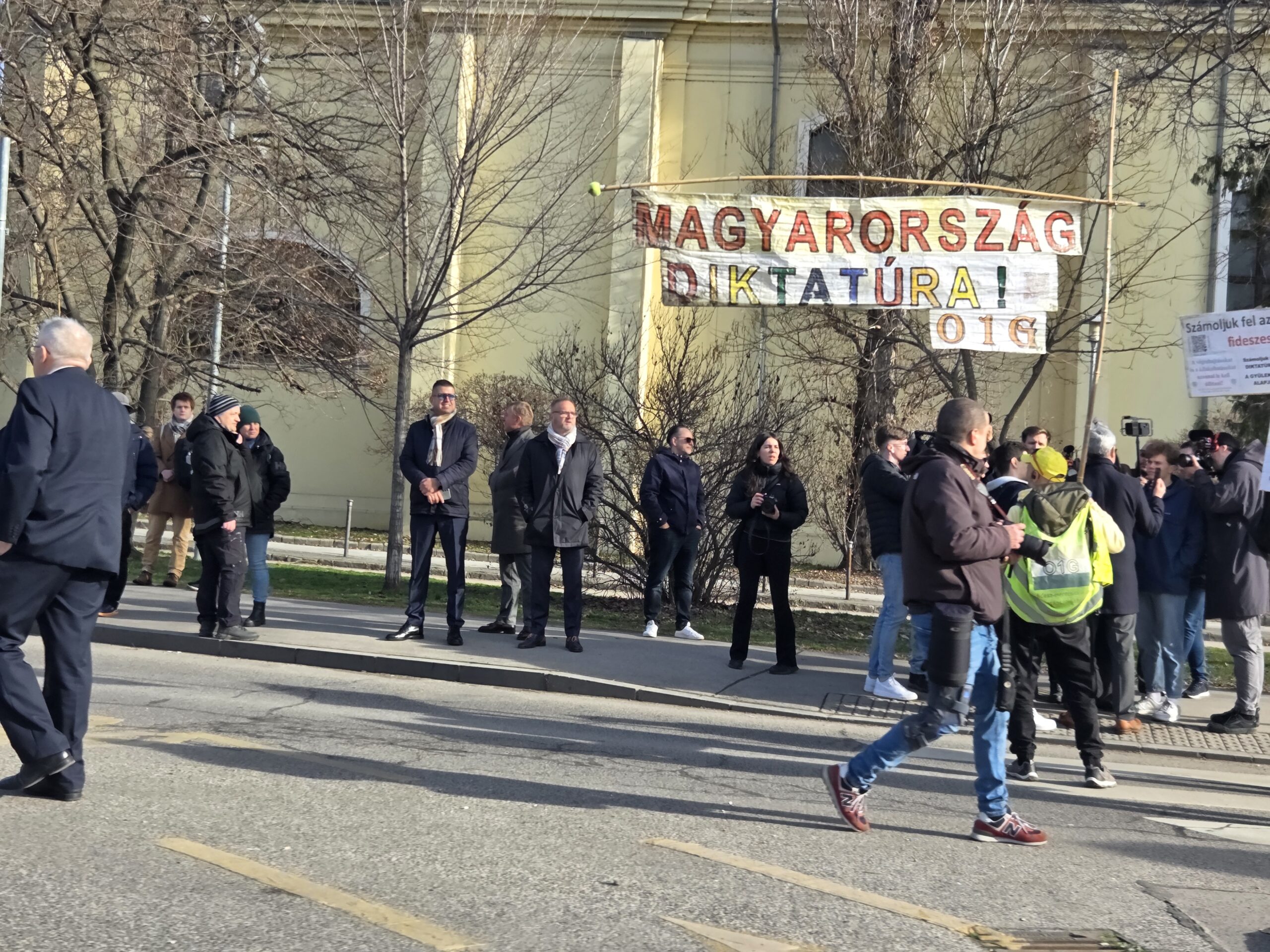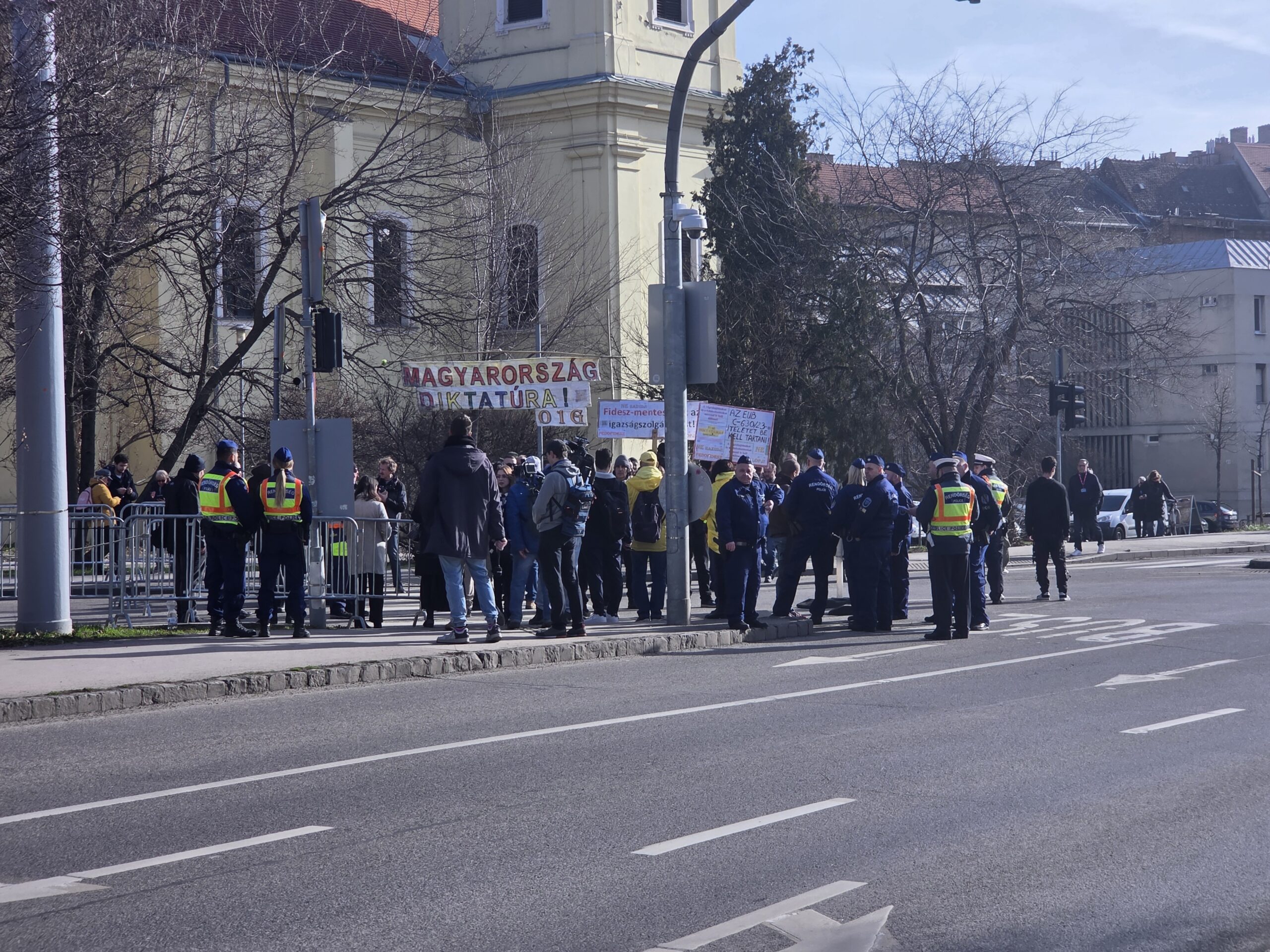 Orbán Viktor felszólalása idején öt fő – négy férfi és egy nő – maradt a kordonokon kívül, akik azt mondták, minden hasonló rendezvényen jelen vannak, és céljuk, hogy álláspontjuk eljusson a nyilvánossághoz.