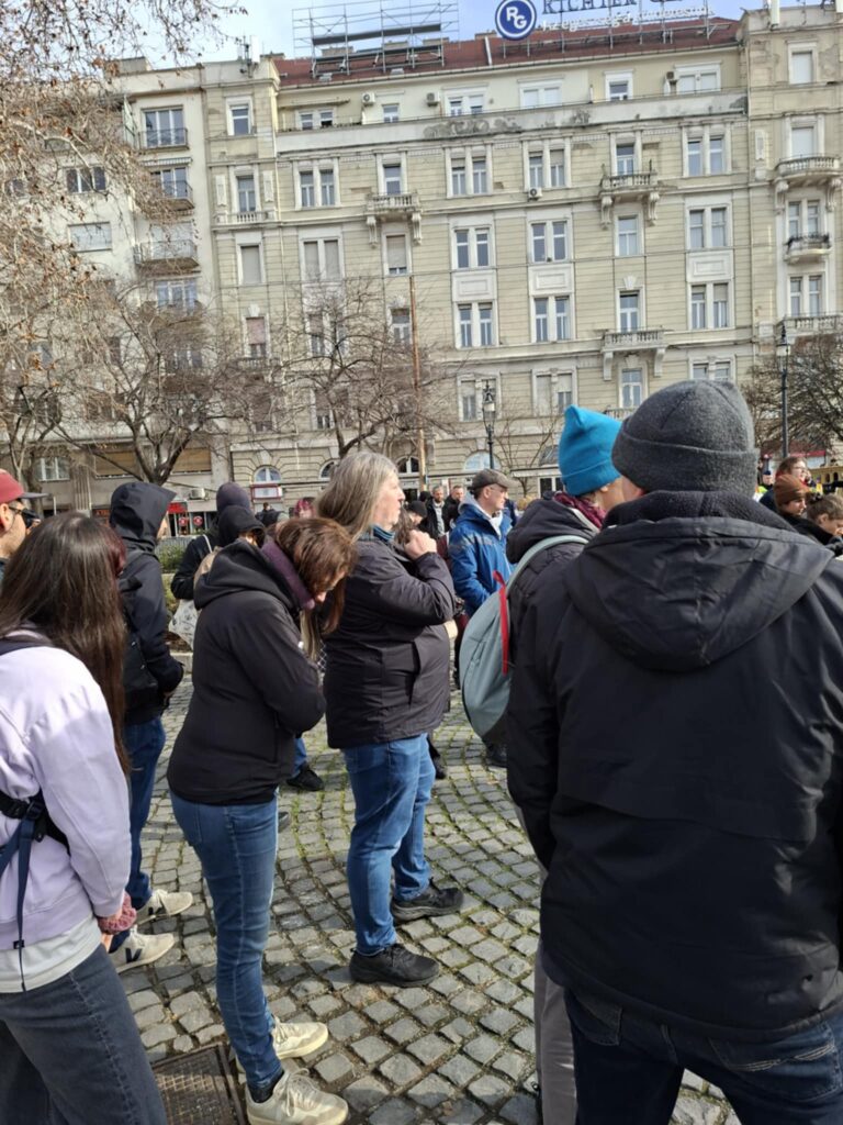 Azt mondták, hogy elsősorban szórólapozni érkeztek, szórólapot csak pár percig osztogattak, és a rendőrök közölték velük, hogy a téren maradhatnak, amennyiben nem tartanak fel molinókat és nem szerveznek demonstrációt.
