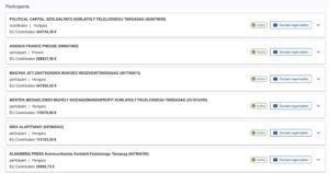 • A támogatás legnagyobb kedvezményezettje a Magyar Jeti Zrt., a 444.hu kiadója, amely 447 650,55 euró, vagyis mintegy 179 060 220 forint uniós forráshoz jutott. Őt követi a PoliticalCapital Kft., amely 324 756,50 eurót, azaz körülbelül 129 902 600 forintot kapott.