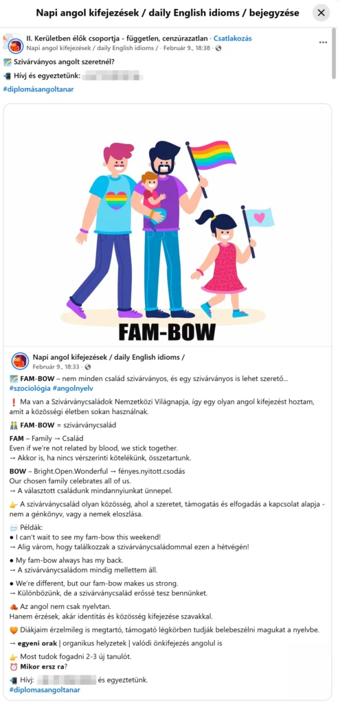 Facebookon a II. Kerületben élők csoportjában A napi angol kifejezések oldal bejegyzése