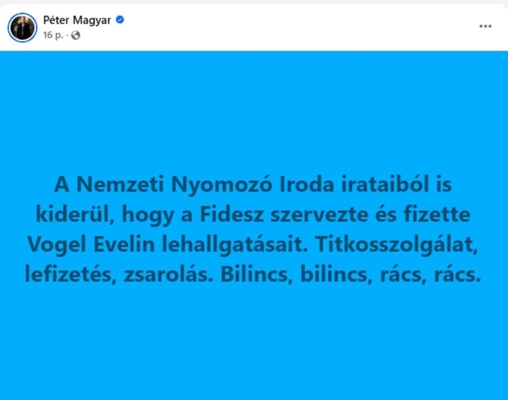 „A Nemzeti Nyomozó Iroda irataiból is kiderül, hogy a Fidesz szervezte és fizette Vogel Evelin lehallgatásait.
