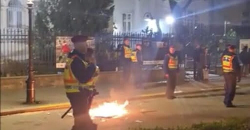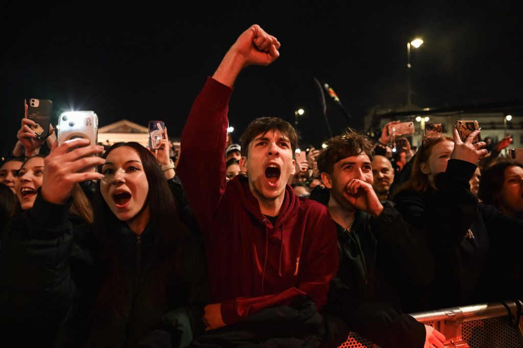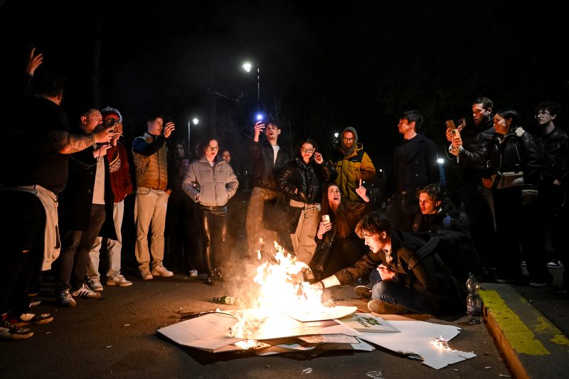 Aztán, amikor az este végére a hangnyomás már ott járt, ahol a fizika is inkább elfordítja a fejét, a tömeg egy része az Andrássy útra sodródott. Itt a forradalmi lendület már nem a hangokban, hanem a tárgyakban keresett kiutat. Plakátok szakadtak, majd lángra kaptak, mintha a valóság egy rögtönzött díszletégetéssel próbálná lezárni az előadást.