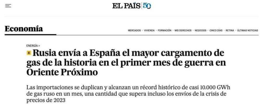 Az El País Spanyolország jelentős gázelosztó központként betöltött szerepét is kiemeli, hat működő újragázosító terminállal. Ez lehetővé teszi a nagyobb nemzetközi kereskedők számára, hogy orosz LNG-t vásároljanak és Spanyolországban tárolják, nem feltétlenül a spanyol piacra.