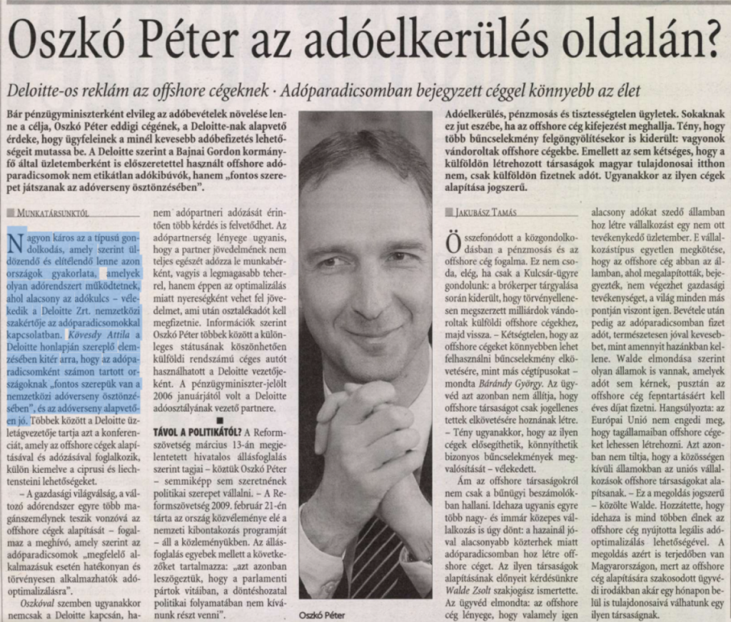 Az írás szerint Kövesdy Attila a Deloitte vezető adószakértőjeként a Gyurcsány–Bajnai-korszak egyik legaktívabb háttérembere volt.